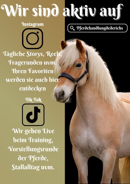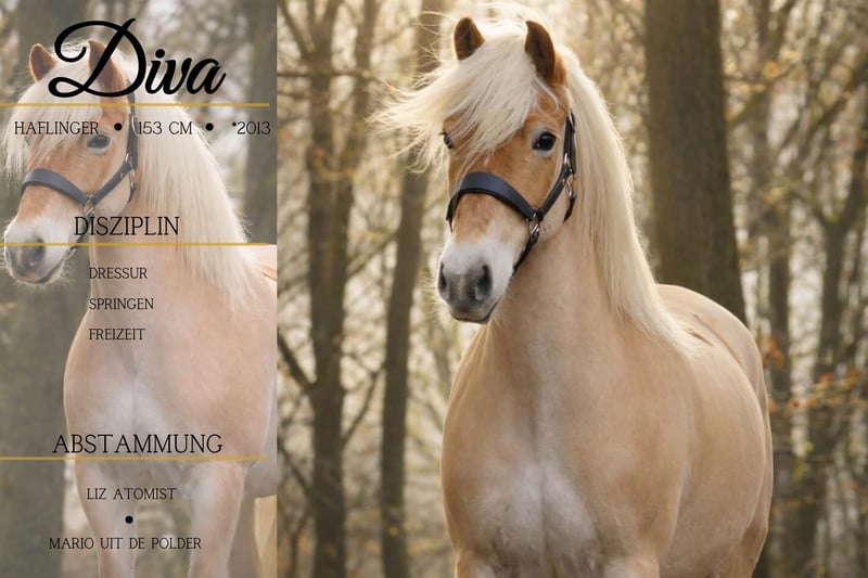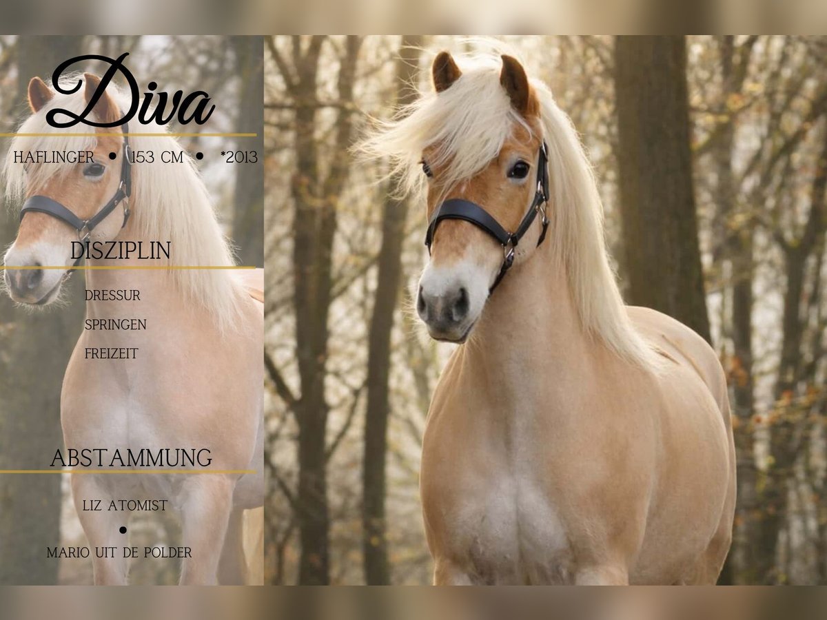 Diva is a 2013-born Haflinger mare, approximately 15.3 hh, by Liz Atomist out of Attack de Lóur. *Diva* is a beautiful and incredibly sweet mare. Very straightforward and honest. She moves beautifully and is suitable for riding schools, making her particularly interesting for training operations. She already has a current pre-purchase exam (AKU) available. Unfortunately, we lack the time to bring her back into full work, so she is now being offered to quick decision-makers on a small budget. No further discounts available. Horse Trading Dederichs – Your Partner for Horse Buying Contact & Availability: Please inquire exclusively by phone at 0173/9792139 Monday – Friday: 9:00 AM – 6:00 PM Saturday: 9:00 AM – 3:00 PM Sunday: Closed Follow us on social media! Experience our daily work with sale horses on Instagram, TikTok & Facebook at Pferdehandlung Dederichs. Viewing: • Viewing appointment: €30 Pre-purchase exam & Transport: • Many of our horses already have a current AKU • You are, of course, welcome to bring your own veterinarian • We can organize an examination for you • We are happy to assist with transport to your new home Other sale horses: Additional horses are available in our stable that are not yet listed online. If your dream horse is not yet among our offerings, do not hesitate to contact us. Important notes: • Height measurements are approximate and not precisely taken • All descriptions are subjective assessments by the seller and do not constitute guaranteed properties