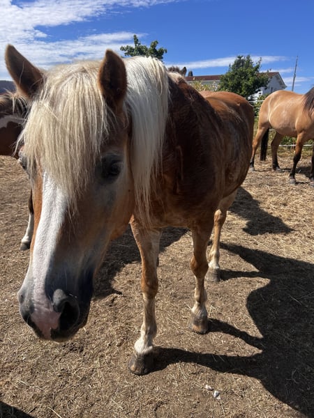 Na lang nadenken overweeg ik nu om mijn originele Haflinger merrie te verkopen. Ze is een voormalig recreatiepaard en moet daarom op een passende manier worden gehouden. De veranderingen en verdere ontwikkeling van de ruiterdoelen van mijn dochter en mijzelf, evenals het beheer van meerdere paarden met sterk uiteenlopende behoeften, brengen ons nu tot deze laatste stap. ⚠️ - Püppi heeft een rationeel voederregime nodig met een gebalanceerde mineralisatie, ze heeft snel de neiging om aan te komen. - Ze draagt duplobescherming, deze is nodig vanwege haar voorgeschiedenis. Röntgenfoto’s zijn beschikbaar. Met deze hoeven loopt ze als een jonge godin. - Ze heeft een voorkeur voor hengsten boven merries. Merries kunnen haar erg heftig maken. - Ze heeft van midden juni tot eind augustus goed kunnen wennen aan de wei, ondanks mager gras en voldoende beweging. ❤️ - Dit pony is geweldig voor kinderen en onzekere ruiters. Als gezelschapspaard zal ze kleine en grote harten sneller laten kloppen door haar zelfverzekerde en betrouwbare aard. - Ze zorgt uitstekend voor veulens binnen een kudde. - Op de rijbaan doet ze haar best, maar toont zich hier vrij talentloos. Basis gymnastiek doet ze braaf mee, wat moet, dat moet. Haar kracht ligt in het buitenrijden, of ze nu alleen, in een groep of met vreemde paarden gaat, kilometer na kilometer. Ze is het perfecte trekpaard voor lange tochten en dat is waar ik haar zie en dat ik voor haar wens. Of het nu water, bergen, dalen, verkeer en zo verder is – alles is geen probleem. Mijn kinderen hebben hier geleerd vertrouwen te krijgen in paarden en leren paardrijden op haar. Daarom zal ik haar alleen wegdoen als iemand haar hart aan haar wint en betere huisvesting kan bieden dan ik nu kan. Ze maakt ook in de aanspanning inmiddels een goede indruk. Of het nu een slede of een kar is. Ik kan me voorstellen dat de overstap naar een koets minimaal is. ✍️ Ze is 14 jaar oud. Ongeveer 1,45 m groot. Regelmatig ontwormd, volledig gevaccineerd. Tanden en hoefijzers worden in maart weer verzorgd.