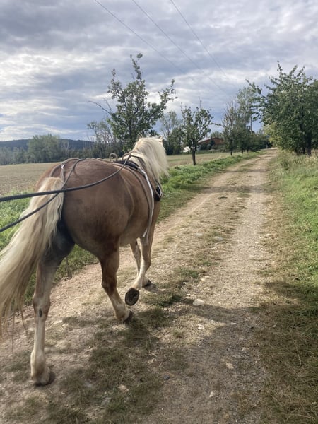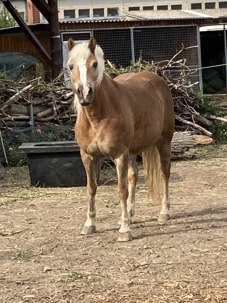 Nach langem überlegen ziehe ich nun den Schritt in Erwägung, meine Original Haflinger Stute zu verkaufen. Sie ist ein ehemaliges Rehepferd und muss dementsprechend gehalten werden. Die Änderung und Weiterentwicklung reiterlicher Ziele meiner Tochter und mir, sowie das Management mehrerer Pferde mit stark unterschiedlichen Bedürfnissen, lässt uns nun diesen letzen Schritt gehen. ⚠️ - Püppi benötigt rationierte Fütterung bei ausgewogener Mineralisierung, sie neigt schnell zum dick werden - sie trägt Duplobeschlag, diese benötigt sie aufgrund ihrer Vorgeschichte. Röntgenbilder liegen vor. Mit den Dingern läuft sie wie eine junge Göttin - sie mag Wallache lieber als Stuten. Stuten gegenüber kann sie sehr heftig werden. - Weidegang hat sie von Mitte Juni bis Ende August gut verkraftet bei mageren Wiesen und entsprechender Auslastung ❤️ - dieses Pony ist der Knaller für Kinder und unsichere Reiter, als Familienpferd wird sie kleine und große Herzen mit ihrer Souveränität und Zuverlässigkeit höher schlagen lassen - sie kümmert sich großartig um Fohlen innerhalb einer Herde - auf dem Platz gibt sie sich Mühe, aber zeigt sich hier recht talentfrei grundlegende Gymnastizierung macht sie brav mit, was muss das muss halt Ihre Stärke liegt im Geländereiten, egal ob alleine, in der Gruppe oder mit fremden Pferden Kilometer um Kilometer. Sie ist das perfekte Wanderreitpferd und dort sehe ich sie und das wünsche ich mir für sie. Egal ob Wasser, Berg oder Tal, Verkehr und so weiter - alles kein Ding. Meine Kinder lernten hier das Vertrauen in Pferde kennen und lernten auf ihr das Reiten. Daher werde ich sie nur hergeben, wenn jemand ihr Herz an sie verliert und bessere Haltungsbedingungen bieten kann, als sie bei mir vorzufinden sind. Sie macht auch im Zug inzwischen eine gute Figur. Egal ob Schleppe oder Schlitten. Ich könnte mir gut vorstellen, dass der Sprung zur Kutsche minimal ist. ✍️ Sie ist 14 Jahre Ca 145 groß Regelmäßig entwurmt, grundimmunisiert Zähne und Eisen werden jetzt im März wieder frisch gemacht