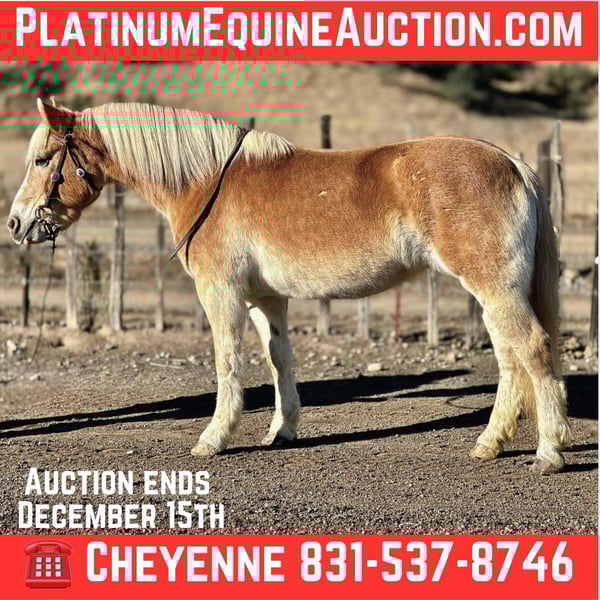 ONLINE AUCTION Place your bids at www.PlatinumEquineAuction.com Starting Bid $3500 Auction ends December 15th, 2024 Need a new saddle? Check out White Rock Saddles on our website or Facebook! Darla is a 12yr old Haflinger mare. She stands about 14.3HH and is stout with a thick build. Darla has been used as a trail horse most her life as well as a cart pony. She drives single and has been drove down streets. Darla has that gentle deamor that Haflinger are known for! She doesn’t get startled by anything and is always excited to see her person. Darla goes down any trail, crowded streets and dark forests. For riding, she has a nice and easy rein, good stop and reverse and has a more athletic movement. She is a say to get into higher gaits, and has pretty circles and floats around beautifully. I could see her going into the English world with her movements! She has a slower steady pace but keeps up with the pack as well. She stands quietly for tacking up and bathing. She is the easiest horse to clip, brush and pick her feet up. She isn’t “marish” and can be stalled or turned out with other horses. Darla isn’t spooky, has no bolt, buck or bite and can be patient with new riders. She is easy to handle and safe as the day is long. She is familiar with all things nature and farm, like barking dogs, loud vehicles, and chaotic commotion. Darla is one you can count on to stay safe and gentle is any situation. Come see Darla in Bitterwater, CA or call Cheyenne Rey for more information about her, at 831-537-8746. ONLINE AUCTION Place your bids at www.PlatinumEquineAuction.com Starting Bid $3500 Auction ends December 15th, 2024 Need a new saddle? Check out White Rock Saddles on our website or Facebook!