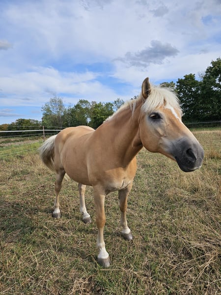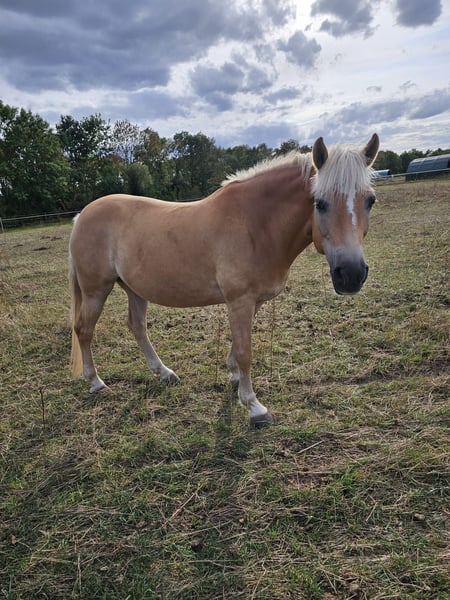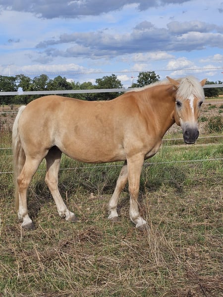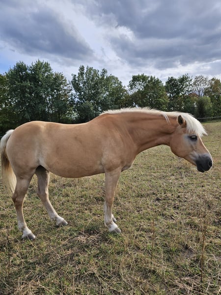 Fieke - eine bildhübsche Haflingerstute, geboren im Jahr 2012, mit einem Stockmaß von etwa 150 cm. Sie ist im Stutbuch I des Ponyverbands Hannover eingetragen und verfügt über einen OX-Anteil von 0,000%. Ihr korrektes Gebäude, ihre Gesundheit und ihr freundlicher Charakter machen sie zu einer vielseitig einsetzbaren Stute, die sowohl für die Zucht als auch als zuverlässiger Freizeitpartner bestens geeignet ist. Sie wurde regelmäßig entwurmt und geimpft, osteopathisch untersucht (ohne Befund) und ihre Zähne wurden kürzlich gemacht. Fieke kennt sowohl Boxen- als auch Weidehaltung und ist mit der Herdenhaltung vertraut. Sie zeigt sich stets brav im Umgang, ist schmiede- und verladefromm sowie zuverlässig beim Tierarzt. Auch im Kontakt mit anderen Pferden ist sie sozial und ausgeglichen. Im Umgang mit Menschen ist Fieke sehr zugewandt, freundlich und neugierig. Sie ist aufgeschlossen, lernwillig, aufmerksam und bringt viel Motivation mit - Eigenschaften, die sich auch unter dem Sattel zeigen. Fieke ist gut geritten, zeigt sich brav in der Bahn wie im Gelände und verfügt über gute, schwungvolle Grundgangarten. Sie hat ihre Leistungsprüfung erfolgreich abgelegt und kennt darüber hinaus auch die Arbeit am Boden. Züchterisch ist Fieke besonders interessant: Sie stammt aus einer sehr guten Linie, ist eine tolle Mutter und zeigt sich auch anderen Fohlen gegenüber stets freundlich. Fieke ist eine absolut liebenswerte, vielseitige Stute mit viel Potenzial und Herz - ideal für Menschen, die einen treuen Partner für Freizeit, Zucht und gemeinsame Abenteuer suchen. Bei dem perfekten Zuhause ist der Preis durchaus noch verhandelbar.