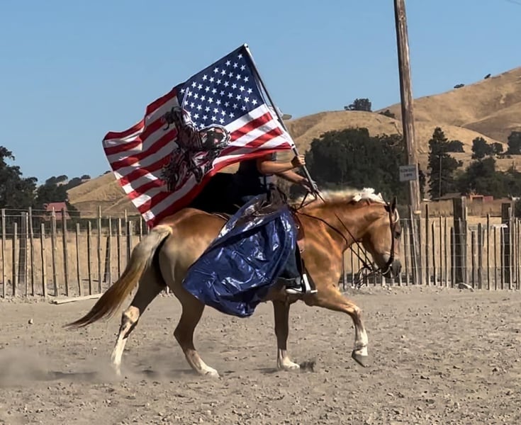 ONLINE AUCTION Place your bids at www.PlatinumEquineAuction.com Starting Bid $3500 Auction ends August 25th, 2024 Need a new saddle? Check out White Rock Saddles on our website or Facebook! Daisy is the true definition of a bombproof babysitter. Standing at a thick 14.2HH and just 12 years old, Daisy will take care of anyone on her back. This little lady has raised up more kids than Nanny McPhee! From city kids to great grandmas, everyone is sure to adore her. Anything a horse can do I’m sure Daisy has done it! From driving wagons, low level English jumping, trails, kids camp she is a true campaigner for the entire family. With her puppy dog attitude, she will be the first horse to meet you at the gate every time you call her name. Daisy is willing, patient, and has a kind soul. She will pack clueless beginners around as slow as they want to go, or throw your more advance rider up on to have a blast out on the trails. She has zero spook, buck, or fight. Crosses bridges, water, and logs like they weren’t even there. Daisy carries flags, goes over obstacles effortlessly, and if you can pick it up, you can carry it on her! In the arena she has more whoa than go, picks up her leads. Has a good light neck rein and rides in any kind of bit you want. I cannot express enough how easy this mare is for anyone to ride and have fun doing it. She has been used in summer riding camps, teaching all ages of children the ins and outs of horses. From how to groom, to how to ride. I guarantee her to be the safest horse you’ll own. You cannot ride her for months on months and she will never change her disposition. Daisy is very easy to clip and bathe. She loads and hauls easily. She has been stalled alone or turned out with multiple other horses and she could care less! She is not a “marish” mare at all and has zero attitude about anything. If you’re looking for a solid weekend warrior trail horse, or the best first horse for your children, you won’t find a better one than Daisy! For more information or to come meet this awesome little mare please contact Cheyenne at 831-537-8746. She is located in Bitterwater, CA. ONLINE AUCTION Place your bids at www.PlatinumEquineAuction.com Starting Bid $3500 Auction ends August 25th, 2024 Need a new saddle? Check out White Rock Saddles on our website or Facebook!