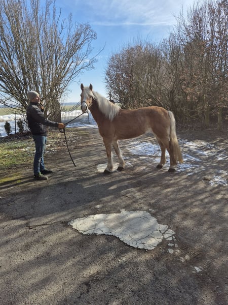 Reinrassige Haflingerstute mit mit guten Bewegungen und voller Abstammung. Sie ist freizeitmässig geritten. Ein Pferd für jedermann.