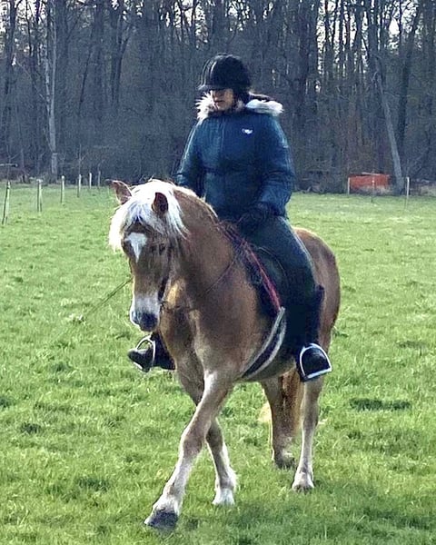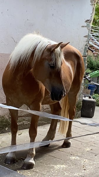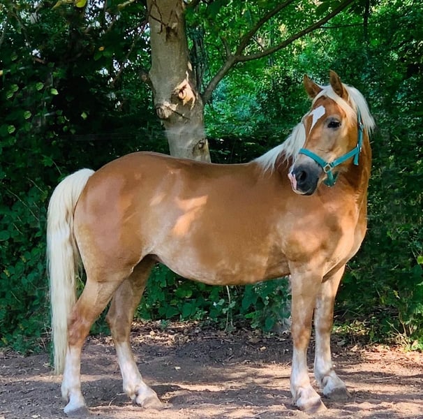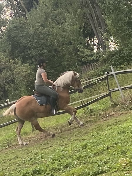 GYPSY LADY is a 1.47 m tall, 18-year-old Haflinger mare, known for her affectionate nature and versatility. She still has plenty of energy and loves to be challenged and motivated. She is a true all-rounder—whether it’s dressage, groundwork, jumping, or relaxed trail riding, Gypsy brings joy to every discipline. Her reliable and gentle manner makes her an excellent partner for riders looking to develop their skills. Thanks to her calm temperament and easy handling, she can also be confidently offered as a children's pony. She has already been used successfully at events such as St. Martin’s lantern rides and has always performed flawlessly. In the field, Gypsy is very sure-footed and brave, enjoying varied routes. During walks, she is attentive, listens well, and easily adapts to her handler’s pace. She also takes great pleasure in learning new tricks and circus-like tricks. A few months ago, she was diagnosed with a chronic cough, which, according to the veterinarian, causes little restriction with sufficient exercise. Due to lack of time, she currently has some muscle loss, but with regular training, she will quickly regain her condition. We are offering her for €2,300 negotiable, including accessories. We wish for Gypsy a loving forever home with a caring person who has the time, joy, and patience to work with her and to make use of her many talents. *Sale not to be made to dealers or riding schools!* This is not an urgent sale; she is being rehomed solely due to lack of time and is intended to go to a good, caring home.