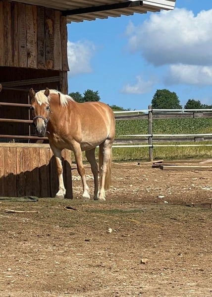 Bella kam im Frühjahr 2022 zu uns. Verkauft wurde sie uns damals als gängiges Schulpferd, was sich jedoch nicht bestätigt hat. Nach unserer Einschätzung wurde mit ihr vor ihrem Einzug kaum gearbeitet – abgesehen von grundlegenden Dingen wie Führen und Longieren. Aufgrund ihrer sensiblen und unsicheren Art wurde sie vermutlich immer wieder „weitergeschoben“, da sie missverstanden wurde und viele Menschen Schwierigkeiten im Umgang mit ihr hatten. Nach ihrer Ankunft bei uns benötigte Bella viel Zeit, um sich einzugewöhnen. Anfangs stand sie nachts in der Box und war tagsüber mit unseren anderen Ponys auf einem großen Paddock. Sie zeigte sich lange sehr nervös und unsicher. Gearbeitet habe in dieser Zeit überwiegend nur ich mit ihr. Wenn ich Unterstützung hatte oder im Urlaub war, hatte sie maximal zwei bis drei weitere feste Bezugspersonen. Bei neuen Menschen zeigte sie anfangs stets ihr unsicheres Verhalten. Sobald sie jedoch Vertrauen gefasst hatte, öffnete sie sich, zeigte Kooperationsbereitschaft und arbeitete brav mit. Bella ist etwas „wetterfühlig“ – bei Wetterumschwüngen, Wind und Kälte ist sie deutlich wacher und angespannter. Seit zwei Jahren wird sie ein- bis zweimal jährlich osteotherapeutisch behandelt. Laut Osteotherapeut musste sie vermutlich über längere Zeit Kopfschmerzen ertragen. Sie wird regelmäßig entwurmt, ist jedoch aktuell nicht geimpft. Ob sie vor ihrer Zeit bei uns geimpft wurde, ist leider nicht bekannt. Beim Hufschmied fällt Bella gelegentlich noch in alte Verhaltensmuster zurück. Sie ist barhuf und das Ausschneiden der Vorderhufe ist in der Regel problemlos. Bei den Hinterhufen kann es situationsabhängig etwas schwieriger sein, wobei es auch bereits Termine gab, an denen das Ausschneiden rundum völlig entspannt und ohne Probleme möglich war. In den Jahren bei uns fielen zwei Schwangerschaften meinerseits an, weshalb Bella in dieser Zeit nur leichte Arbeit gemacht hat. Auch aktuell fehlt mir die nötige Zeit, um ihr die konstante Beschäftigung zu bieten, die sie braucht, um ausgeglichen zu sein. Positiv hervorzuheben ist, dass sie sich charakterlich deutlich weiterentwickelt hat: Sie ist insgesamt ruhiger geworden und nicht mehr so schnell gestresst. Bei nahezu täglicher Beschäftigung und unterstützender Fütterung (u. a. Magnesium) kann man mit ihr super arbeiten. Ich habe mit Bella intensiv Bodenarbeit gemacht, ebenso Sattel- und Trensentraining, Aufsteigtraining, etwas Hängertraining sowie Schrecktraining (Planen, Luftballons, Regenschirm, Schwimmnudeln etc.). Außerdem war ich regelmäßig mit ihr spazieren. Alleine ist sie dabei sehr nervös, mit einem zweiten Pferd an ihrer Seite fühlt sie sich deutlich sicherer. Sie kennt Freispringen, Longieren, Doppellonge und Equikinetic. Gearbeitet wurde sie im Reitzelt, auf dem Reitplatz, im Roundpen, auf der Wiese sowie im Gelände. Zum eigentlichen Reiten sind wir noch nicht gekommen – ich saß bereits auf ihr und wurde ein paar Mal geführt. Bella lebt aktuell im Offenstall, ist herdenverträglich, dabei jedoch typisch Stute: Sie ist keine Leitstute, weiß aber genau, was sie möchte, und kann dies auch deutlich machen. Ist die Rangordnung geklärt, lässt sie sich vom Herdenchef gut lenken. Außer ein paar kleine Schrammen hat sie bei uns bisher gesundheitlich noch nichts gehabt. Sie ist sehr robust. Was wir für Bella suchen Wir suchen für Bella einen ruhigen, pferdeerfahrenen Menschen, der sie in einem Offenstall oder einer ähnlichen artgerechten Haltung unterbringen kann und sich fast täglich mit ihr beschäftigt. Wichtig ist, dass sie Zeit bekommt, verstanden wird und in ihrem eigenen Tempo arbeiten darf. Geduld und Einfühlungsvermögen sind entscheidend. Das Reiten sollte zunächst nicht im Vordergrund stehen. Bella eignet sich nicht als Anfänger-, Kinder- oder klassisches Schulpferd. Sie sucht eine feste Bezugsperson, die Freude an Bodenarbeit, Vertrauensaufbau und feiner Kommunikation hat und bereit ist, ihren Weg gemeinsam mit ihr weiterzugehen. Wir wünschen uns ausdrücklich ein endgültiges Zuhause, in dem Bella ankommen darf und nicht erneut weitergereicht wird. Anmerkung zu den Videos: Unsere Bella ist immer das zweite Pferd auf den Videos.