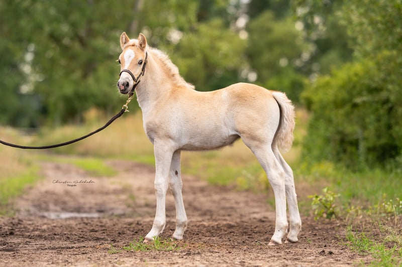 The wonderful Gertrude is incredibly people-oriented and affectionate. She is highly intelligent and knows how to present herself. She is familiar with the foal ABC and will only be sold with proof of lineage and registration. She has been dewormed multiple times and introduced to the farrier. She has a very good type and harmony. Furthermore, this mare has above-average movement! She was a championship foal! Interesting for sport and breeding. In the last pictures, you can see the father!