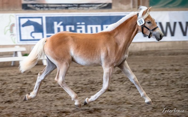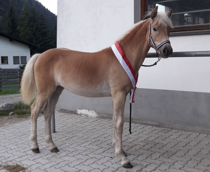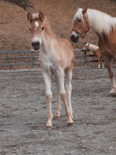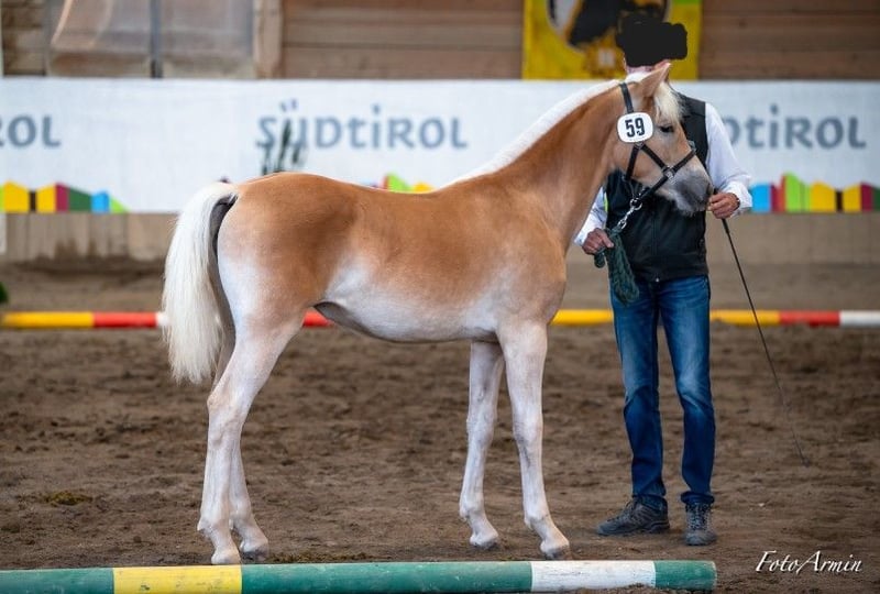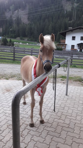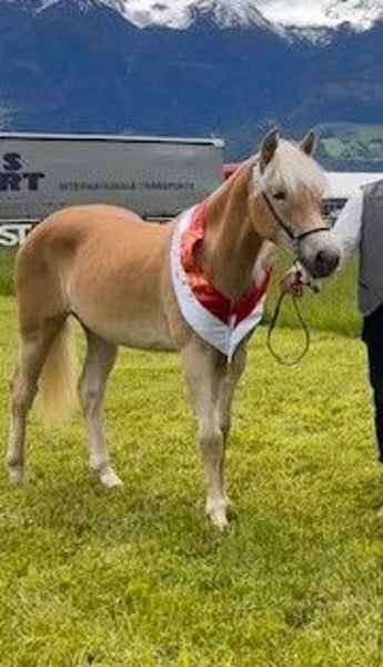 Greace is a tall, modern Haflinger mare with excellent, expressive movement. She was the winner of her foal class at the Vinschgau Foal Evaluation and was also nominated for the South Tyrol Foal Championship, where she was placed in the prestigious highest show class 1A. At one year old, she participated in the Haflinger Festival (South Tyrol Regional Show celebrating 150 years of Haflinger) and achieved an impressive 4th place. She is familiar with the horse treadmill, has been lunged, and is currently being backed. Traveling in a trailer is no problem for her. For more information, please contact ONLY by phone: +43 664 7372 5393.