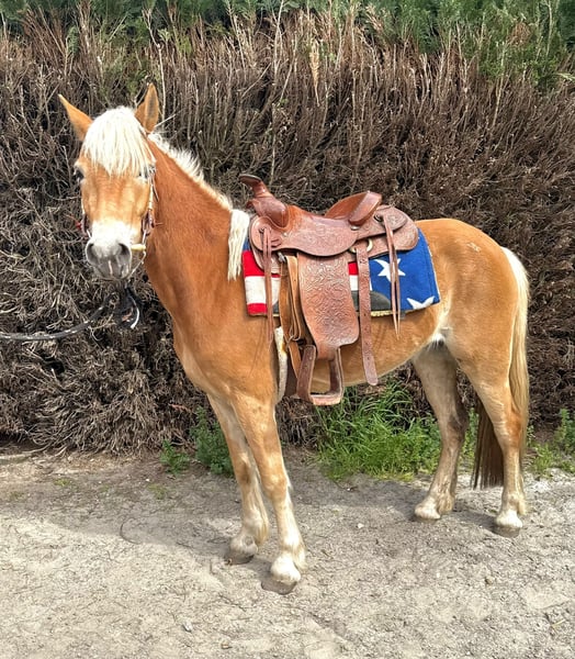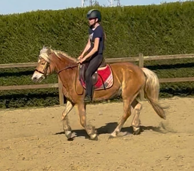 Super lieve & brave haflingermerrie Deze toffe dame is 5j en meet ong 147 +~ Ze is een echte allrounder; Ze heeft hiervoor lessen meegelopen. Ze kan een sprongetje. Kent basis in de piste. Gaat graag wandelen en is verkeersmak. Ze heeft een veulentje gegeven. Lief paard in omgang en met andere paarden. Staat bij ons 24/7 in de kudde. Zal lessen meelopen.