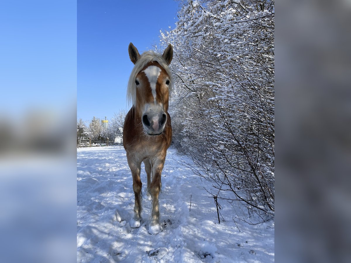 … mit keckem Charakter und tollen Gängen im modernen Reitpferdetyp, die sich hier tierisch langweilt, sucht ebenbürtigen Partner für gemeinsame Abenteuer. Wegen Aufgabe der Pferdehaltung schweren Herzens in gute fördernde Hände abzugeben, wo sie viel bewegt werden. Wir würden gerne beide zusammen abgeben. Da sie doch sehr unterschiedlich sind und wir für beide einen guten Platz suchen, ist auch Einzelkauf möglich. Dazu müsste man sich abstimmen, dass sie gleichzeitig den Stall verlassen, da wir haben keine weiteren Pferde haben. Beide durften ihre(n) ersten Sommer auf der Alm verbringen. Wir kauften sie im September 21 als Absetzer/Jährling von einem Tiroler Züchter (Nähe Ebbs), gewöhnten sie langsam ans Reiten, machen viel Boden- und Freiarbeit. Sie sind nun nach rund 4 1/2 Jahren liebevoller Offenstallhaltung bei uns am Bauernhof bereit für die weitere Ausbildung. Sie kennen Kinder, Hunde, landwirtschaftliche Fahrzeuge, Radfahrer, etc, Im Sommer bei vereinzelten Spaziergängen / Schrittausritten zeigten sie sich entspannt. Malena 5 Jahre, mit „Schnäuzel“: quirlig, frech (noch etwas unerzogen), schlau, aufmerksam, braucht jemanden, der sich von ihrem anfänglichen Gezicke nicht beeindrucken lässt, und regelmäßige Bewegung, kennt Reitergewicht im Schritt, Trab, Galopp. Man muss noch in der Mitte stehen (wurde aber seit gut einem Jahr kaum geritten und nur von unten bewegt, da ich eine langwierige Knieverletzung durch ein fallendes Scheunentor hatte und seit Mitte März frisch operiert bin) Raumgreifende federnde Gänge, wäre auch gut im Sport aufgehoben eher rangmittig, sucht schnell einen Kraulpartner, sehr intelligent, möchte Entscheidungen (mit-)treffen, dennoch Guter Teamplayer wenn man ihr Vertrauen gewonnen und ihren Hafi-Sturkopf überzeugt hat, Möglicher Schwerpunkt: Freizeit, Dressur, Fahren, Zucht. Sie sind sehr menschenbezogen und zutraulich, lieben es geputzt/gekrault zu werden. Malena, unser Prinzesschen, zickt anfangs gerade beim Putzen gerne (wehe du kraulst mich nicht an meiner Lieblingsstelle, da hab ich sie wohl etwas verwöhnt), ist aber händelbar. Sie können aber auch ihr Jungpferde-Temperament rauslassen. Bei regelmäßigem Training sind sie ausgeglichen und sehr sportlich. Mit ihrer Abstammung eignen sie sich auch gut für die Zucht. Für Malena ist reine Offenstallhaltung ungünstig, sie braucht v.a. um die Dämmerung einen Rückzugsort vor den Fliegen und viel Pflege, was sie in letzter Zeit bei uns zu wenig hatte. Sämtliches Zubehör kann, falls gewünscht, günstig mit erworben werden. Wir hoffen, es finden sich die richtigen Menschen. Bei ernstem Interesse gerne melden! Bettina