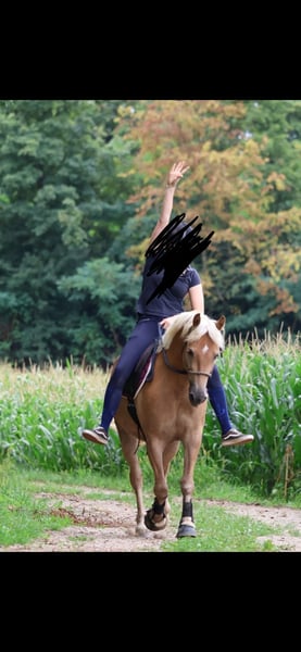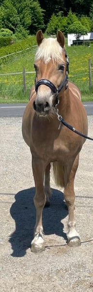 Dear 5-year-old mare for sale - approximately 1.48 m in height With a heavy heart, I am selling my mare, as I unfortunately do not have the time to further develop her. She is an absolutely sweet and well-behaved mare without any vices. She is familiar with tractors, dogs, chickens, farriers, and trailer loading - all without any problems. She was in training at the end of last year and is also comfortable going out alone. In the arena, she reliably shows good walk, trot, and canter - she is eager to learn and cooperative. However, she is still not fully trained due to her age and should be further developed. She is strong-minded, people-oriented, and has a great character - ideal for someone who enjoys working with a young, honest horse. Only to loving and experienced hands. Home before price.