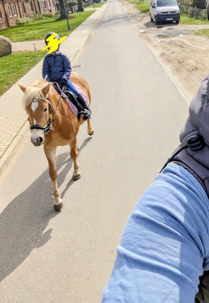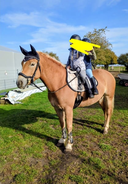 Hier kommt Lara! Lara besitzen wir seit 4 Jahren. Sie ist eine treue Seele, hat meiner Tochter das Reiten beigebracht. Nun hat meine Tochter andere Interessen und Lara darf ein andere Familie glücklich machen mit ihrem Goldcharakter. Lara macht jeden Spaß mit: Ringreiten, Turniere, Ausritte mit anderen Pferden, alleine oder mit Fahrrad. Man kann auf ihr Voltigieren (hier ist sie allerdings nicht die Fleißigste). Sie ist in jeder Situation händelbar von Groß und Klein. Ein Parcours absolviert sie brav. Wir haben auch eine Kutsche gekauft im Herbst. Nur zum Einfahren kam ich leider nicht mehr, da ich schwanger geworden bin und vorraussichtlich im Frühjahr dafür keine Zeit haben werde. Die Kutsche darf aber gegen Aufpreis mitgenommen werden. Lara ist ein "Koppelunfall" (aber reinrassig) und besitzt einen Pass ohne Abstammung. Sie steht in einer gemischten Herde und macht für Futter alles. Sie wurde uns als Ekzemer verkauft. In den letzten zwei Jahren benötigte sie aber nur eine Fliegenhaube. Decken, Fliegenhaube, Sattel und Trense nimmt sie mit in das neue Zuhause. Sie kennt Offenstall und im Winter Boxenhaltung mit täglichen Weidegang. Sie kennt es auch alleine zu sein und klebt nicht am Zuhause, wenn sie mal alleine ausreiten muss. Wir haben ganz viele verschiedene Videos, die wir gern auf Anfrage versenden. Aufgrund der bevorstehenden Geburt meines zweiten Kindes, ist es Probereiten bis Mitte/Ende Februar von Vorteil ;)