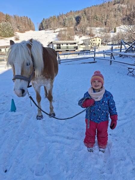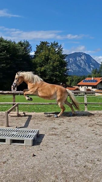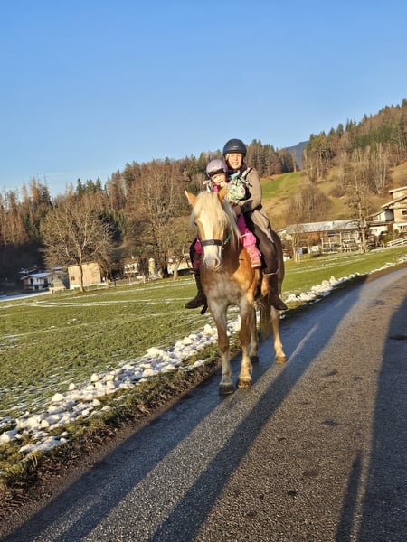 Reitpädagogik Hafi sucht neuen Möhrengeber. Schweren Herzens habe ich mich dazu entschieden meine 8 Jährige Haflinger Stute zu verkaufen. Sie kommt mit der Offenstallhaltung bei mir nicht klar und versteht sich leider mit meinem Pony nicht. Ich bin viel mit ihr ins Gelände gegangen und da braucht sie was für ihre Hufe, nur leider mag sie die Hufschuhe so gar nicht. Deshalb wäre eine Boxenhaltung wo sie beschlagen werden kann ideal für sie. Ich wünsche mir einen Platz für sie wo sie ihrer Leidenschaft mit den Kindern zu arbeiten nachgehen kann. Sie hat bei mir in der Reitpädagogik gearbeitet und macht da alles toll mit. Nur bei Kinder die unsicher sind bleibt sie öfter Mal beim Führen stehen. Ich habe auch mit Erwachsenen mit beeinträchtigung mit ihr gearbeitet. Sie mag auch die Arbeit an der Longe sehr. Ich selber hab viel Freiarbeit mit ihr gemacht und bin mit ihr Ausreiten gegangen. Im Gelände ist kein Anfängepferd (außer sie wird geführt) Sie braucht einen Reiter der ihr Sicherheit gibt und innere Ruhe hat, dann ist sie super drauf. Bin mir ihr viel mit dem Kappzaum am langen Zügel ins Gelände und da war sie jederzeit super drauf. Sie ist auch eine tolle Zuchtstute. Sie hat bei mir zu ihrem Fohlen ein Waisenfohlen mit aufgezogen, was für ihren liebevollen Charakter spricht - sie ist wirklich eine tolle Mama. Ihre Tochter von 2024 kann bei mir im Stall besichtigt werden. Ich freue mich auf deine Nachricht.