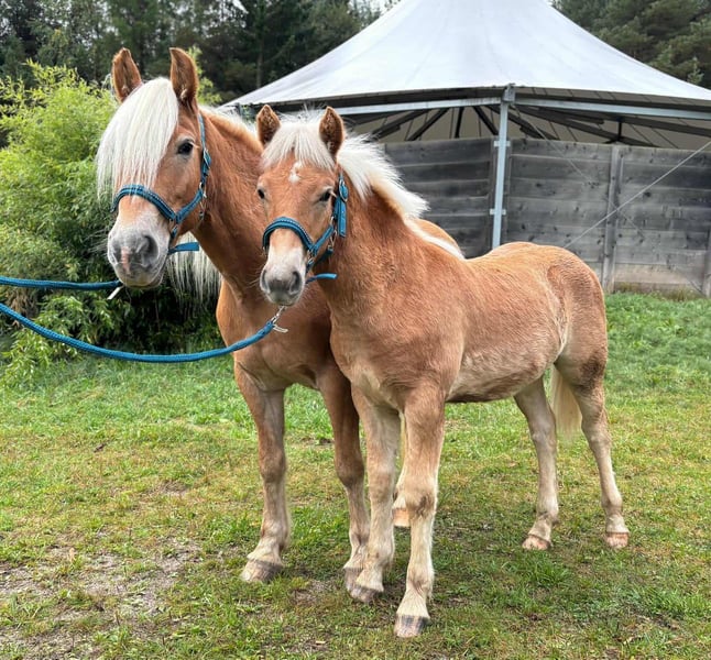 Unser Hengste kommen aus Südtirol und sind original Haflinger, rein gezogen, mit original Haflinger Equidenpass inkl. Stammbaum und Foto. Sie besitzen einen Haflinger Brand, erreichen ca +- 154 cm Stm. Und ca +- 150cm Stm. Sie durften ihre ersten 6 Monate auf der Alm verbringen. Sie werden im März und Mai 1 Jahr alt, sind neugierig und lieben es Aufmerksamkeit und Streicheleinheiten zu bekommen soviel nur geht. Sie leben in einer kleinen Hengstherde, geben schon brav die Hufe, lassen sich putzen und sind Halfterführig. Impfungen und Schmied waren kein Problem. Nun suchen sie ihren neuen Besitzer der mit ihnen ganz viel Zeit verbringt und zusammen wächst. Das beste Alter um eine Beziehung aufzubauen. Bei Ernst gemeinten Fragen gern melden. Preis je Fohlen