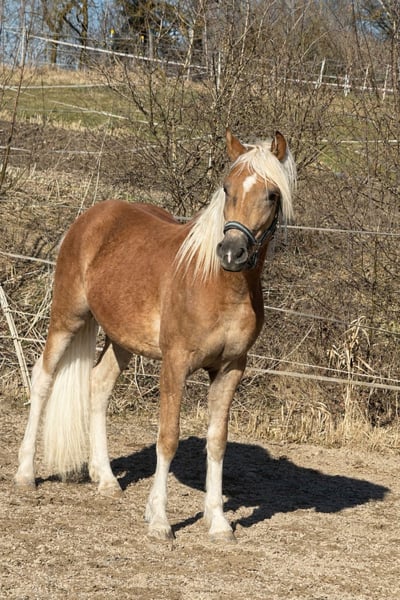 Zum Verkauf steht ein äußerst vielversprechender Haflingerhengst, geboren 2024, mit dem Namen Nando. Er ist ein Edelblut-Haflinger mit 2,735 % Blutanteil und überzeugt durch Sportlichkeit, Typ und eine hochinteressante Abstammung. Abstammung & Leistung: Vater: Nachtprinz (im Besitz von Bernhard Heisinger) – Sieger der Haflinger Körung 2022, Prämienhengst und Leistungshengst. Nachtprinz absolvierte seine Hengstleistungsprüfung 2024 mit einer Endnote von 7,71 und belegte damit den 2. Platz seiner Prüfungsgruppe – ein sehr solides Ergebnis mit Blick auf Rittigkeit, Grundgangarten und Leistungsbereitschaft. Großvater: Nachtstolz – mittlerweile Elitehengst aufgrund seiner überdurchschnittlich erfolgreichen Nachzucht und sportlichen Erfolge. Mutter: Abstammend von Aachen, einer bewährten Linie mit korrektem Fundament und gutem Wachstum. Erfolge: Siegerhengstfohlen bei der Fohlenschau – bereits früh durch Qualität, Ausdruck und Bewegung aufgefallen. Typ & Bewegung: Nando präsentiert sich als sehr sportlicher Haflinger mit überdurchschnittlichen Grundgangarten. Besonders hervorzuheben ist sein raumgreifender, taktsicherer Schritt, der deutlich über dem Durchschnitt liegt. Exterieur & Entwicklung: Aktuelles Stockmaß: ca. 1,43 m Erwartetes Endmaß ca. 1,50 m Sehr edler Kopf, ausdrucksstark, mit langer Mähne und harmonischem Gesamtbild Charakter & Umgang: Absolut brav im täglichen Umgang Regelmäßig beim Hufschmied Geimpft und entwurmt wird täglich zur Koppel geführt Geht problemlos auf den Hänger Perspektive: Aufgrund seiner Qualität, Bewegung und Abstammung bringt Nando alle Voraussetzungen für verschiedene Wege mit. Eine Vorstellung zur Körung im Herbst wäre denkbar, ist jedoch keine Voraussetzung für den Kauf. Ebenso ist eine Kastration problemlos möglich, sodass Nando sich auch hervorragend als sportlicher, verlässlicher Freizeitpartner entwickeln kann. Nando wurde von uns als zweites Absetzpferd gekauft. Da wir unseren Bestand verkleinern, suchen wir nun einen fördernden, neuen Platz, der sein Potenzial weiterentwickelt.