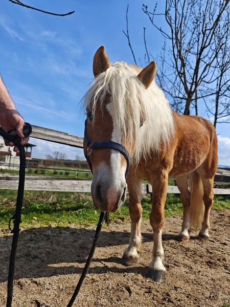 Whiskey ist ein wunderschöner, eingetragener Haflinger mit ausgezeichneten Papieren. Er wurde von mir gezüchtet und seit seiner Geburt mit viel Liebe und Fürsorge aufgezogen. Er ist ein ganz besonderes Pferd mit einer großen Persönlichkeit und viel Herz. Persönlichkeit & Temperament Der Klassenclown: Whiskey ist unglaublich clever, neugierig und verspielt. Er ist ein natürlicher Problemlöser, der es wirklich liebt, Neues zu lernen und Tricks zu zeigen. Sensibel & Loyal: Er ist etwas sensibler als mein anderes Pferd, was ihn sehr reaktionsschnell macht. Er gedeiht in einer engen, vertrauensvollen Bindung. Natürliches Talent: Schon als Fohlen hat er das Springen geliebt und zeigt großes Potenzial für jemanden, der leichtes Springen, Cross-Country zum Spaß oder Arbeit an der Longe interessiert ist. Ausbildung & Potenzial Grundlagen: Er wurde longiert und ist es gewohnt, einen Sattel zu tragen. An der Longe lernt er schnell, schätzt aber eine konsequente und selbstbewusste Führung. Zukunft: Er hat das Potenzial, ein wunderbares, lebensfrohes Freizeitpferd für jemanden zu werden, der einen klugen, aktiven Partner schätzt. Gesundheit & Status Status: Derzeit ist er Hengst, kann aber vor seinem Umzug in sein neues Zuhause kastriert werden. Pflege: Er ist gesund, vollständig geimpft und wird alle 3–5 Wochen professionell beschlagen. Eine besondere Bitte um ein Für-Immer-Zuhause Whiskey liegt mir sehr am Herzen, und ich suche ein „Für-Immer-Zuhause“, in dem er als Familienmitglied behandelt wird.