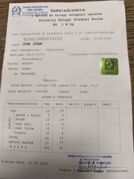 Ogier haflinger z licencją