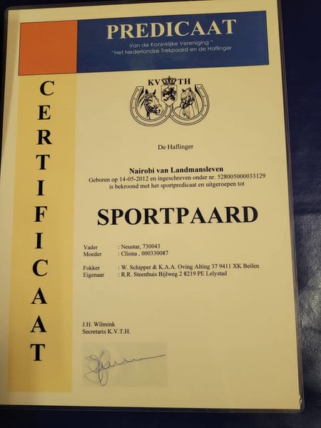 Aangeboden wegens persoonlijke veranderingen. Met heel veel pijn in mijn hart: Mijn prachtige voor het leven goedgekeurde haflinger hengst Nairobi van Landmansleven. (Sport) Geboren 15-05-2012 Vader Liz Neustar Moeder Cliona (Elite Preferent) van Liz Wegbereiter. Stokmaat 1.58 Dressuur Z1+22 winst (binnen 1.5 jaar vanaf ongeklasseerd) PSSM1 VRIJ via ouderdieren. Goedgekeurd op afstammelingen Goedgekeurd voor het leven bij de KVTH Dekt natuurlijk. Nairobi is een ongelooflijk brave hengst. Hij is erg lief in omgang en super sociaal naar mensen. Kent hierbij geen hengstenstreken en is zijn gehele leven lang consequent hierin opgevoed. Braaf bij de hoefsmid, braaf bij de tandarts. Alleen te laden en te lossen op de trailer. Nairobi woont hier momenteel tussen de merries op stal en heeft zijn eigen plekje buiten. Hij is hierin braaf maar weet zich wel te laten horen als er een merrie hengstig is. Hij heeft hier geen fysiek contact met merries of andere paarden en is hiermee zeer tevreden. Hij weet immers niet beter. Nairobi is een groot paard met sublieme bewegingen en een atletisch lichaam. Met gemak zijn we vanaf de L1 naar het Z1 gereden in de dressuur met 22 winstpunten. Hiermee heeft hij zijn sportpredicaat dan ook toegewezen gekregen vanuit het stamboek. Tussen de warmbloedpaarden wist hij ook gerust met 4 winstpunten en prijzen naar huis terug te keren. Daarnaast vind hij een blokje om maken buiten erg leuk. En een sprongetje maken doet hij ook graag even als cavaletti training. Ik heb hem meegenomen naar verschillende grote events. Hierbij is hij wel meer hengst qua gedrag en mag je duidelijk zijn in jouw grenzen. Onder het zadel maakt hij zich dan groot en gaat met extra bravoure de ring rond. Nairobi is geschikt voor iemand met ervaring wanneer je met hem op wedstrijd gaat. En wanneer je hem rijden wilt tussen andere paarden. Het blijft immers een hengst. Hij Is 100% eerlijk onder het zadel zal niet gemeen bokken of steigeren of er vandoor gaan. Maar wilt wel graag werken. Hij pakt zijn werk goed en snel op! Er zit absoluut nog veel meer in deze topper qua dressuurpaard. Nairobi is braaf met wassen! zelfs met een stoomcleaner! Wegens persoonlijke omstandigheden heb ik hem voor het laatste gestart juni 2024. En loopt hij momenteel te genieten van zijnvrije tijd. Maar hij wordt nu basis getraind door mij. Nairobi is een paard waarbij je na weken niks doen weer kan opstappen en kan wegrijden. In het verleden is hij ook aangespannen geweest voor de wagen. Echter is dit nooit meer opgepakt. Kortom een geweldig allround paard! Voor wie iets speciaals zoekt. Dus zoek jij een Eyecatcher voor in de sport? Hou je van een stoer paard? En zoek jij een goudeerlijke vriend voor het leven? Dan ben je welkom om kennis te komen maken. Nairobi wordt verkocht als hengst. Evt. Castratie is voor een nieuwe eigenaar. Aangezien hij ook een perfect leerpaard kan wezen ! De prijs voor Nairobi is €14500 euro keuringen toegestaan kosten koper Met vriendelijke groet Richelle Steenhuis
