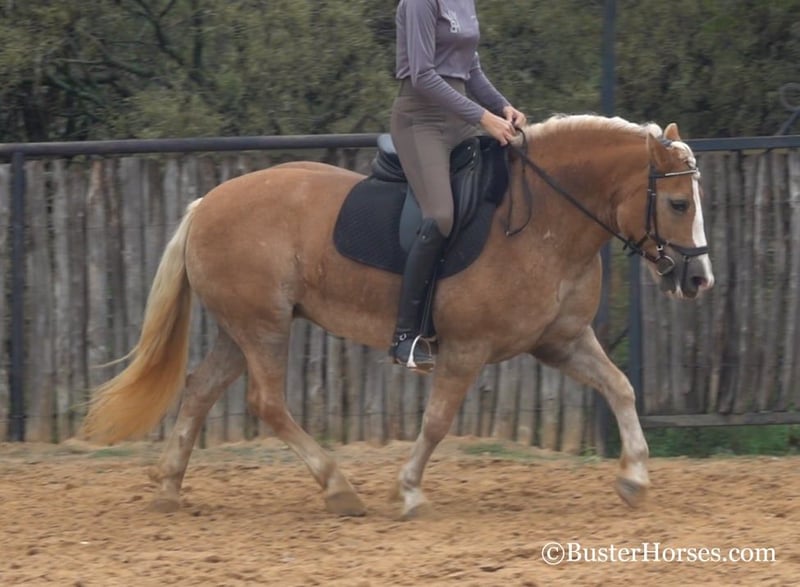 ONLINE AUCTION Place your bids at www.PlatinumEquineAuction.com Starting Bid $3500 Auction ends October 20th, 2024 Need a new saddle? Check out White Rock Saddles on our website or Facebook! “Gloria” – 14H, 8 year old chestnut Haflinger mare. We have the unique opportunity to offer a home-raised, only one-owner. beloved personal/family horse. This sweetheart has been someone’s pride and joy and she reflects that! She is an absolute doll to be around and so much fun – she is absolutely stunning – she is as wide as she is tall – literally!!! She is also gorgeous, has a beautiful head, has a ton of self-carriage and elegance, and is absolutely as shapey as one comes! Gloria is incredibly smooth gaited, easy to ride, and she is the same horse once a year – once a month – or five rides a week. She has tons of natural rate and stop, she is always happy to plant to a stop at the mention of “whoa” – but is also still very light and forward and easy off of your legs! Lots of feel, and very responsive, not one you have to “peddle” everywhere, she has a great work ethic, but is also happy to rate down and stop anytime. Gloria would be a world class entry level eventer, Hunter/Jumper, dressage. or Pony Club mount. Or she is an absolutely deluxe pleasure horse, family horse, trail horse, clinic, or competitive trail riding horse! Would also be great at the bridle-less competitions, she has lots of guide for a big girl, and her rate and stop is about as always-there, as they come in a horse! This big and wide mare is an absolute blast to ride. She loves to go places, loves trail rides, loves parades, loves going in to town – she hops right in the trailer and is always happy to go to work! She loves people, and loves to have a job. She has an absolutely incredible personality!!! She is very loving and affectionate. She gives kisses…. and smiles – on command!!! But still has very respectful, professional, tidy manners on the ground. This is one of those ultimate dream personal horses that everybody hunts down and they do not come up for sale often! Don’t miss out on Gloria! To see additional videos, go to our website: BusterHorses.com or our Facebook page Buster Horses. Check our website for buyer reviews, more videos, additional info: etc: https://busterhorses.com/Gloria Gloria was just shod this week, her teeth were also done by an equine dentist, she had her ears preemptively treated for ticks, and she was also power packed wormed. She is good to shoe, has great feet and also goes well barefoot – if her new owner prefers her to be barefoot, we can have her shoes pulled and trim her prior to her heading to her new home. She will arrive at her new home up-to-date and ready to go to work! Please call anytime for more information Buster Horses Ashley 214-605-7174 Gloria is located in Weatherford, TX – one hour from Dallas / Fort Worth International Airport. She is an easy day trip or fun overnight trip to come try out, from anywhere! We are experienced, knowledgeable sellers, and we can help with quickly arranging affordable shipping to any buyer’s location – we have experience shipping worldwide – including regularly to Hawaii, Canada, Mexico, Europe, and South Africa. ONLINE AUCTION Place your bids at www.PlatinumEquineAuction.com Starting Bid $3500 Auction ends October 20th, 2024 Need a new saddle? Check out White Rock Saddles on our website or Facebook!
