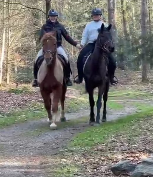 Onze Jimmy is echt een pareltje op vier benen, en met zijn 10 jaar en een hoogte van ongeveer 1,52 m is hij precies de juiste maat voor recreatief genieten en knuffelmomenten. Hij is een Karakatschan-paard (ook bekend als Karakatschan-pony), een van de oudste en meest weerbare paardenrassen van Europa. Zijn mix onderscheidt zich niet alleen door zijn klassieke uitstraling, maar vooral door zijn ontzettend lieve en vriendelijke karakter, dat hem tot een echte publiekslieveling maakt. Jimmy belichaamt het typische pony-type in elke zin en is simpelweg ontzettend knuffelig, wat hem bij ons ook tot een favoriet maakt onder tieners die momenteel met hem rijden. Zijn rustige aard maakt dat je er echt van kunt genieten. Natuurlijk brengt een paard als Jimmy ook een flinke portie persoonlijkheid mee, inclusief de beroemde pony-eigenwijsheid. Maar dat maakt de omgang met hem juist zo charmant, want zelfs als hij eens zijn zin doordrukt en met een klein trotse buiging de kont omhoog doet, is dat nooit wild, maar gewoon grappig en zorgt voor een goede sfeer in de stal. Wie op zoek is naar een eerlijk, lief paard met karakter dat voor ieder plezier te hebben is, zal meteen verliefd worden op deze kleine kerel. Daarnaast rijdt Jimmy liever ontspannen in het terrein. Alle informatie is zonder garantie, sociaal in een kudde, en hoefsmidvriendelijk. Neem gerust contact op (ALLEEN) via WhatsApp: 01703718888 Locatie: 41334 Kaldenkirchen, geen beschikbaarheid. Geen rente. •Proefrit op maandag tot vrijdag €25 • Za & Zo, feestdagen €30 •Voorstelling onder de ruiter €10