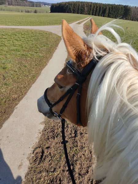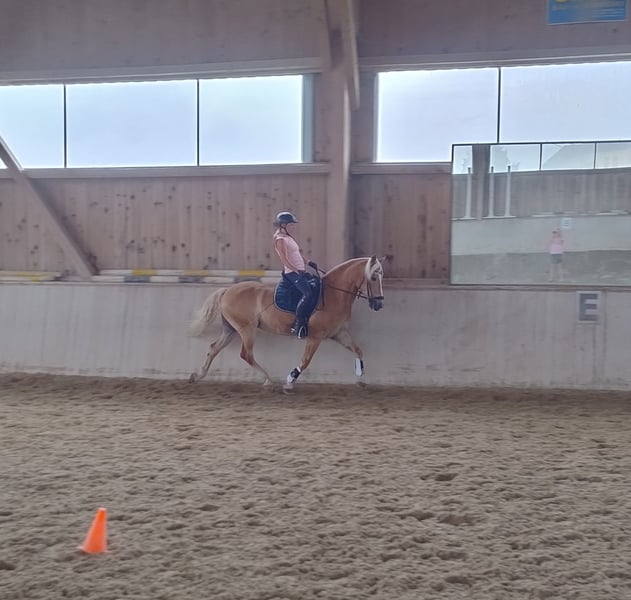 Verkaufe meinen sehr liebenswerten Haflinger Wallach, 13 Jahre alt, ca. 153 cm Stockmaß Walentino ist gut ausgebildet, wurde bis LM-Niveau geritten und war erfolgreich auf Turnieren unterwegs. Er würde sich in Zukunft über die Abwechslung (Bodenarbeit, Reiten, ggf Sprunggymnastik. Longieren, Ausreiten) sehr freuen. Im Umgang ist er ausgesprochen brav, menschenbezogen und absolut zuverlässig. Hufschmied, Tierarzt, Verladen sowie Stallalltag kennt er problemlos. Er zeigt sich unter dem Reiter sehr motiviert, fleißig und lernwillig mit gutem Vorwärtsdrang – daher braucht er einen sicheren und souveränen Reiter. Aufgrund eines Fesselträgerschadens ist er derzeit nur eingeschränkt reitbar. Wir haben inzwischen 10 Wochen kontrolliert Schritt unter dem Sattel gearbeitet, gestern war die letzte tierärztliche Kontrolle. Empfehlung des Tierarztes: weitere 4 Wochen Schritt, anschließend darf mit vorsichtigem Trab-Aufbau begonnen werden. Haltung und Pflege • regelmäßig geimpft • Wurmkur aktuell • Hufe beschlagen - regelmäßig gepflegt • derzeit Box mit ganztägigem Paddock • würde sich auch über Offenstallhaltung sehr freuen Fotos und Videos sende ich gerne auf Anfrage. Preisvorstellung: € 1.500 VB Platz vor Preis.