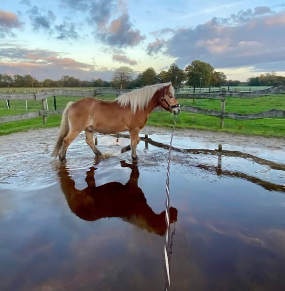 Moin! Auf diesem Wege möchten wir unseren 18 Jährigen Haflinger ‚Amigo‘ aufgrund von Zeitmangel verkaufen. Er hat ein Stockmaß von ca. 140cm. Amigo ist im täglichen Umgang sowie beim reiten stehts brav. Im Gelände zeigt er sich, so wie sonst auch, unerschrocken. Sofern man sich auf den Weg zur Weide macht, ist er immer der erste der angelaufen oder angetrabt kommt. Er hat keinerlei Erkrankungen. Amigo ist gegenüber dem Menschen sowie auch in der Herde eher der dominantere Typ - er hat den typischen Pony-Sturkopf. Meines Erachtens ist er für Anfänger und Kinder nicht geeignet. Zur Zeit ist er regelmäßig geritten. Trense, Sattel sowie etwaiges Zubehör kann dazu erworben werden. Sofern Interesse besteht: Meldet euch gerne!