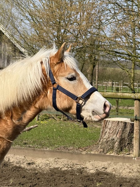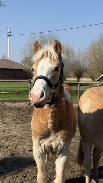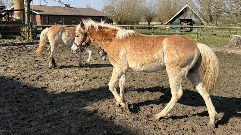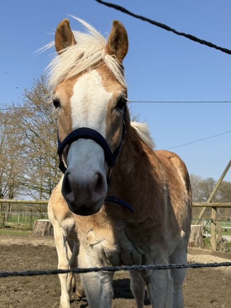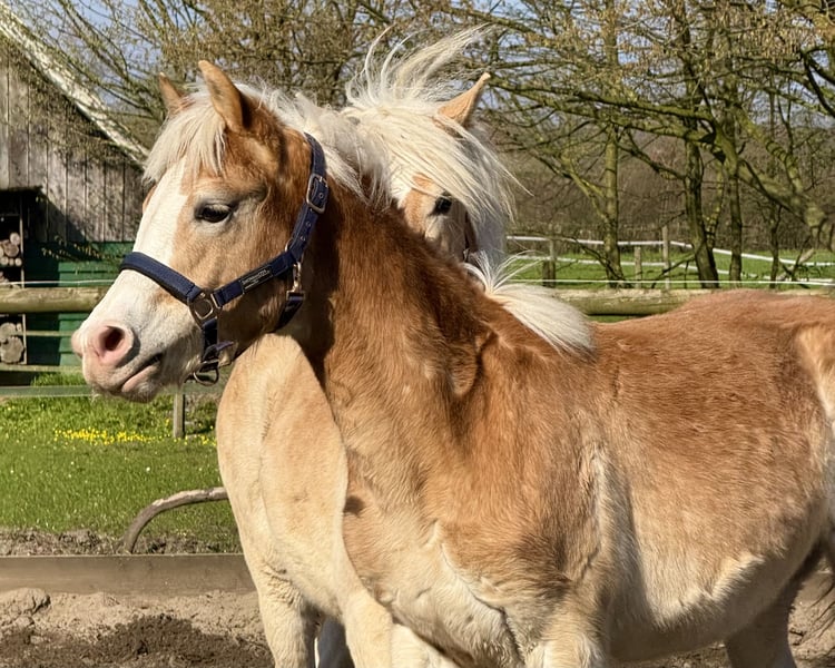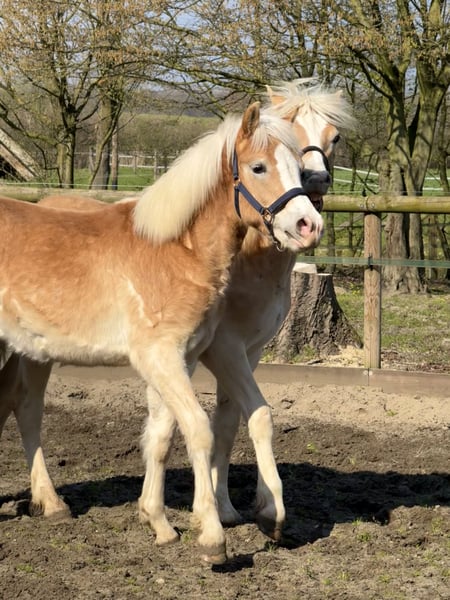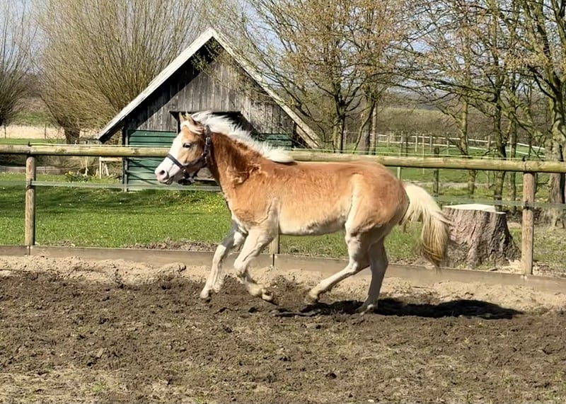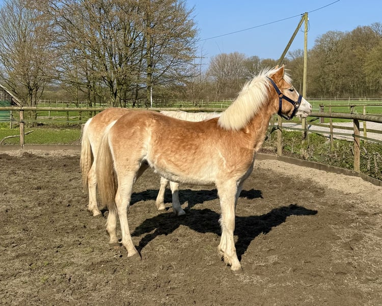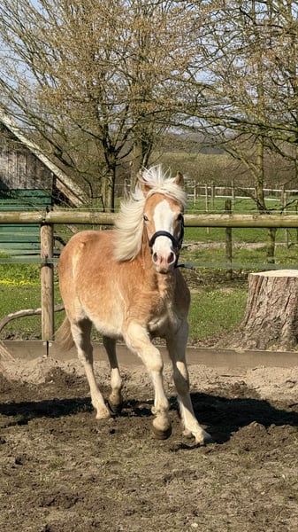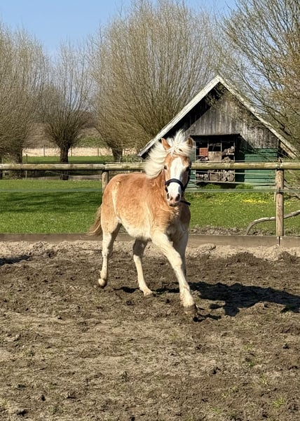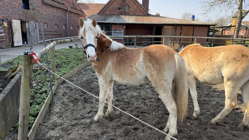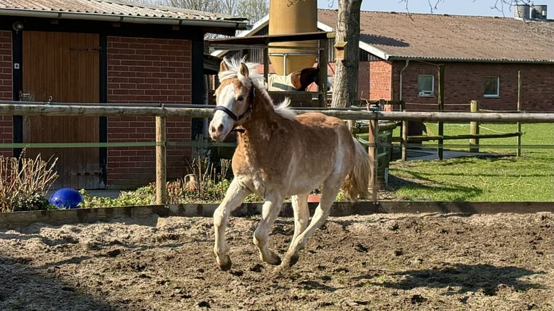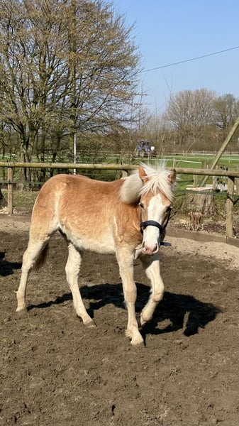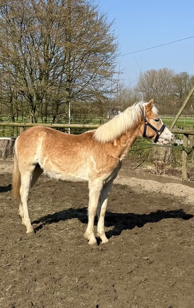 Wir verkaufen dieses hübsche Haflinger-Wallachfohlen aus einer durchgezüchteten Mutterlinie. Ernie bringt das ideale Potenzial für Sport und Freizeit mit. Er punktet neben seiner Optik und dem typischen hellen Langhaar vor allem durch einen klaren Kopf. Er ist menschenbezogen, unerschrocken und geht neugierig auf neue Aufgaben zu. Er kennt das Anbinden, Führen, Putzen, landwirtschaftliche Maschinen und Hunde. Damit bringt Ernie die wichtigsten Grundlagen der Erziehung eines Jungpferdes mit. Er ist an den Menschen gewöhnt, lässt sich überall anfassen und ist damit auf das Leben als Reit- oder Kutschpferd vorbereitet. Vor allem kennt er das nebenherlaufen an der Kutsche. Ernie ist mit seinem gleichaltrigen Kumpel Bert artgerecht in einer Herde im wunderschönen Münsterland aufgewachsen. Die weitläufigen Wiesen und Weiden haben ihnen Trittsicherheit und Gelassenheit mitgegeben, die man sich von einem jungen Haflinger wünscht. Beide Fohlen sind robust im Offenstall aufgewachsen, werden regelmäßig entwurmt und haben einen Equidenpass. Beschreibung: Name: Ernie Rasse: Haflinger (mit Edelblutanteil) Geschlecht: Wallach Geburtsdatum: 06.05.2025 Farbe: Fuchs mit hellem Langhaar Endmaß: voraussichtlich 145-150cm Zucht & Qualität: Ernie stammt aus einer offiziell eingetragenen Zucht im Münsterland. Er besitzt volle Papiere (Abstammungstafeln) vom Westfälischen Pferdestammbuch. Bei der Anpaarung wurde besonders auf Charakterfestigkeit und korrektes Fundament geachtet. Die Mutterstute kann vor Ort besichtigt werden. Ernie ist gegen Tetanus geimpft, gechippt, besitzt einen Equidenpass und wurde dem Zuchtverband vorgestellt. Eignung: Durch sein korrektes Gebäude und seine schwungvollen Grundgangarten stehen Ernie später alle Wege offen. Ob als Freizeit-Pferd, im Fahrsport oder für den ambitionierten Breitensport ist er ein nervenstarker Partner. Melden Sie sich gerne telefonisch unter: Kontakt: +49 152 05977730 Hinweis: Ein Kennenlernen ist jederzeit nach Absprache möglich! Ernie und sein Kumpel Bert können einzeln oder zusammen abgeben werden (Platz vor Preis).