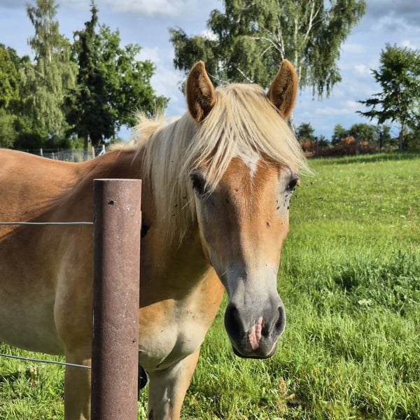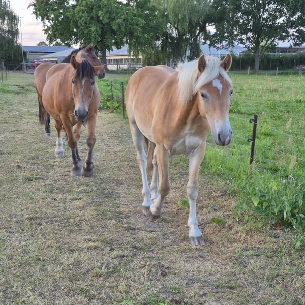 Mailo ist ein im Februar 2024 geborener Haflingerwallach. Er stammt ab von Liz Medicus aus dem Ponypark Padenstedt. Mütterlicherseits geht er auf den Solero zurück. Er ist ein sehr menschenbezogenes, umgängliches liebes Pferd, das gefallen möchte. Mailo hat sehr gute GGA, kennt das Fohlen ABC,und ist schon einige Male Hänger gefahren. Er ist selbstverständlich grundimmunisiert, regelmäßig entwurmt und gesund. Eine AKU von Juli liegt vor. Er wird mal ein Endmaß von ca 1,54 erreichen. Mailo hat eine sehr gutes kräftiges Fundament, wobei er trotzdem im sportlichen Typ steht. Ein Paß mit Abstammungsnachweis und Eigentumsurkunde liegen selbstverständlich vor.