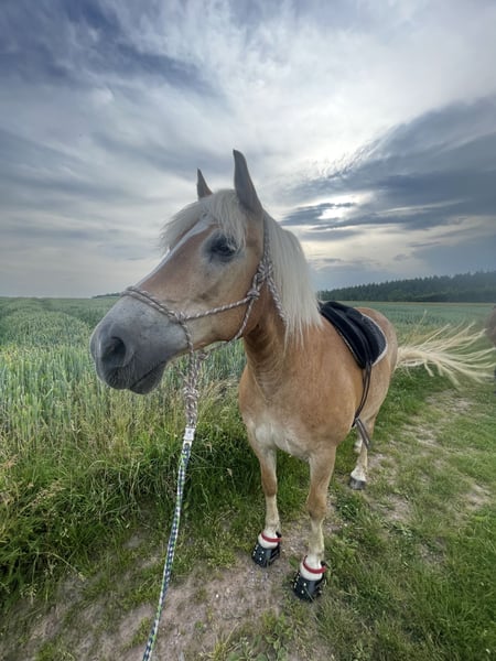 Askan is een 19-jarige Haflinger ruin, ongeveer 140 cm schofthoogte, die drie jaar geleden onder slechte omstandigheden bij mij terechtkwam. Sindsdien stond hij samen met zijn oude vriend, die recentelijk is overleden. Voor zover ik weet, is hij gezond. Toen ik hem kocht, heb ik een kleine veterinaire check laten doen, waar niets uit is gekomen. We hebben samen veel opgebouwd, omdat hij in het begin erg wantrouwend was tegenover mensen. Hij heeft zeker een fijne en ervaren hand nodig, maar als je eenmaal zijn vertrouwen hebt gewonnen, is het werken echt plezierig. Hij is in omgang over het algemeen onbevreesd, maar bepaalde triggers die ik niet kan benoemen, kunnen hem uit zijn rust brengen. Als hij dan rust krijgt van een kalme hand, is dat geen probleem. Zoals gezegd, ik weet niet wat hem is overkomen voordat hij bij mij kwam, daarom benadruk ik dat hij absoluut niet geschikt is voor beginners. Ik heb al een paar keer op zijn rug gezeten en we hebben begeleide wandelingetjes gemaakt, maar ik zou hem niet willen verkopen als dressuurpaard. In de omgang aan de longeerlijn hebben we veel plezier gehad; hij is erg attent en fijn aan de hand. Ik hoop dat hij een nieuw thuis vindt waar hij in een kudde, bij voorkeur in een open stal, een rustig en rechtvaardig leven kan leiden, waar hij af en toe wordt gewerkt, omdat hij, als hij zich verveelt, geneigd is om "stout" te doen. Omdat hij tijdens het rijden in de trailer erg paniekerig wordt, begint te bokken, te steigeren, etc., geef ik de voorkeur aan een verkoop in de buurt of een korte reisafstand. Bij serieuze interesse en verdere vragen, stuur gerust een bericht via WhatsApp :)