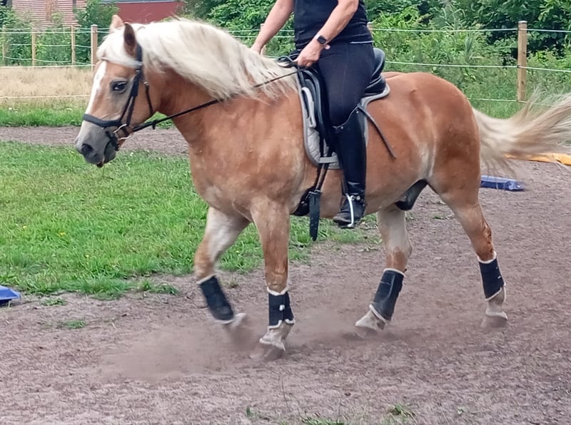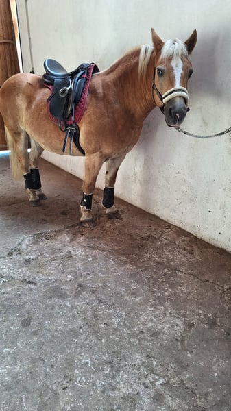 Ich biete hier meinen Haflingerwallch, 20 Jahre an, da ich ihm aus gesundheitlichen Gründen meinerseits nicht gerecht werde. Er ist 145cm größ und vom alten Typ. ER ist total gelassen ob mit Kinder oder Erwachsenen. Auf dem Platz ist er ehr faul aber im Gelände super sicher. Egal ob man über die Kanalbrücke oder unter der Autobahn reitet, ihn stört nichts. Shadow ist auch hier ehr der gemütliche Typ, der sich alles anguckt wenn er was nicht kennt und nicht losrennt. Daher auch als Therapiepferd interessant. Im Gelände trägt er Hufschuhe, die er natürlich auch mitbekommt. Genau wie seine Trense und Outdoordecken. Er kennt es im Offenstall oder nachts in der Box zu wohnen. Er ist absolut Sozialverträglich mit allen Pferden und Menschen. Bis Ende 2024 ist er im Schulbetrieb gelaufen, mit Anfängern und wurde auch bei den kleinsten eingesetzt. Im Januar habe ich ihn übernommen, da der Schulbetrieb aufgelöst wurde. Aufgrund meines handicaps und seiner Breite kann ich ihn doch nicht reiten. Er wurde das ganze Jahr von unterschiedlich starken Reitern bewegt, die alle begeistert von Shadow sind. Da Bewegung sehr wichtig für Ihn ist, da er Spat diagnostiziert hat(Berichte und Röntgenbilder liegen vor) such ich einen entsprechenden Platz für ihn. Ansonsten sind mir keine Krankheiten, wie Rehe oder Allergien bekannt oder aufgefallen. Er hat volles Papier