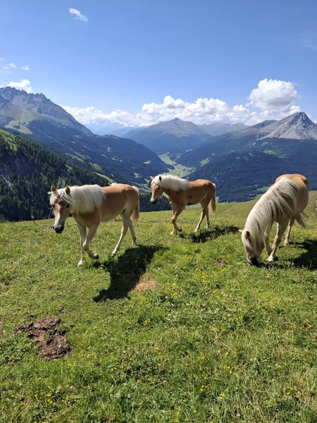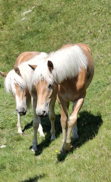 Benetton is a very tall Haflinger with a beautiful coat color, confidently covering the weight of an adult rider. At nearly 2 years old, he currently measures 15.2 hh and has not yet finished growing. I estimate he can reach around 15.3 hh. As a foal, he already participated in the Haflinger Festival (150th anniversary of the Haflinger Land Show in South Tyrol) with his mother, as seen in the first video. Last spring, he was gelded and was able to spend his second summer in the herd on the mountain pasture, where he gained confidence in his steps and robustness (shown in the second and third videos). He is occasionally lunged and is familiar with the horse treadmill. He is used to dogs, cats, and other animals. His mother and father are used in our riding operation and also pull carriages and sleighs. Benetton is very curious and affectionate, and he is not easily spooked for his age, which makes him a promising future leisure partner. He is vaccinated and regularly dewormed. It would be wonderful if he could find a lifelong home where he can be supported and developed.