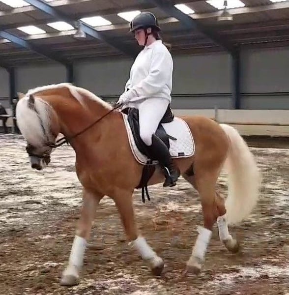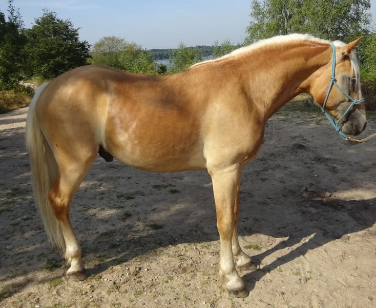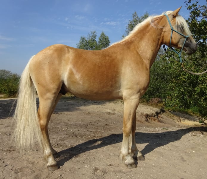 Highly talented and uniquely beautiful sport Haflinger gelding for sale, with great presence, superb movement, and an excellent bloodline! Born on May 4th, 2022. Currently measuring 1.50 meters and still growing. Includes pedigree, KVTH: A line! With (pre)parents holding numerous titles and awards as premium, star, and sport horses. Sire: Anthony van de Wortel Hf. 29433.K1, 1.51 m, born in 2006 in the Netherlands, first premium sport. V.: Anthony, licensed, 312/T 28842102, H. 247410, born in 2002, ADB FI. V.M.: Arachon, licensed, 299/T.K1, NL. Sire Anthony van de Wortel is a highly talented sport and breeding stallion. For a YouTube video, please send a message. ADDITIONAL INFORMATION: - Very striking appearance. Strong build yet elegant. - Beautiful, full mane and tail. - Very easy to handle, incredibly gentle, allows everything. According to veterinarian and dentist, it is very rare how cooperative and easy-going he is. - Very affectionate and sweet, intelligent, honest, and reliable. - Fully traffic-proof. Familiar with all farm vehicles, trucks, and other traffic and road users. - Experienced with various animals. - Quiet at the farrier, veterinarian, and dentist. - Saddled and familiar with walking, lunging, and groundwork, etc. - Experienced with longe, Pessoa, bitless bridle, bareback pad, saddle and bridle, blankets, and other equipment. - Not afraid of anything. Scare training posed no problem for him. - Trained in Natural Horsemanship; Parelli. - Entire history known. In our possession since he was 6 months old. Learned everything from the start and has already experienced a lot. - Extremely suitable for sport, including dressage, driving, or jumping, where he shows real talent. - Very eager to learn and willing to work. - Has always been kept outside 24/7 in a paddock with an indoor/outdoor stable, summer turnout. Ranks at the bottom of the herd. - Free of any defects. No eczema, laminitis, or other ailments. #So far, only groundwork under saddle has been initiated. Due to the current weather conditions, the riding arena is hardly usable, so further riding cannot be continued at the moment. He picks up everything very quickly and easily. Given his young age, we do not want to rush. Trial riding is not possible for these reasons. He is still fully adaptable to his new owner. A beginner rider is not the person we see as the future owner.# Photos show him at all ages, from foal to now. The rider in the photos is 1.75 m tall. The latest photos are of his sire and dam. Asking price: €6,000. Optionally, a new brown leather versatile saddle available for transfer at €175, and possibility to acquire additional equipment. Videos of him under saddle available upon request. Please see my other ad for another horse for sale. Horses are being sold due to the end of a hobby caused by lack of time. They are not in our way! If you are interested and would like to meet this beautiful animal, I look forward to hearing from you! Not reachable on Saturdays.