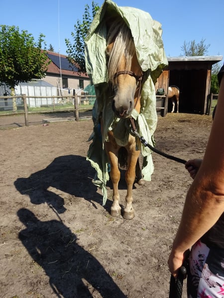 Sehr talentierter und einzigartig schöner Sport-Haflinger Wallach zu verkaufen, mit viel Ausstrahlung, hervorragender Bewegung und einer erstklassigen Blutlinie! Geboren am 04.05.2022. Derzeit misst er 1,50 m und wächst noch. Inklusive Stammbaum, KVTH: A-Linie! Mit (Vorfahren) die zahlreiche Titel und Prädikate tragen, wie Stern, Sport und Erste Prämie. V: Anthony van de Wortel Hf. 29433.K1, 1,51 m, geb. 2006, NL, Erste Prämie Sport. V.V.: Anthony, liz. 312/T, 28842102, H. 247410, geb. 2002, ADB FI V.M.: Arachon, liz. 299/T, K1, NL Vater Anthony van de Wortel ist ein äußerst talentierter Sport- und Deckhengst. Für ein YouTube-Video sende ich gern eine Nachricht. INFORMATIONEN: - Sehr ansprechende Erscheinung. Starke, aber elegante Konstitution. - Wunderschöner, voluminöser Langhaarschopf an Mähne und Schweif. - Sehr umgänglich, äußerst brav, lässt alles zu. Laut Tierarzt und Zahnarzt ist es äußerst selten, wie kooperativ und unkompliziert er ist. - Sehr anhänglich und lieb, intelligent, ehrlich und zuverlässig. - Vollverkehrssicher. Bekannt mit allen landwirtschaftlichen Fahrzeugen, LKW-Verkehr und anderen Fahrzeugen sowie Verkehrsteilnehmern. - Im Umgang mit verschiedenen Tieren vertraut. - Beim Schmied, Tierarzt und Zahnarzt brav. - Zügelfahrig und vertraut mit Spaziergängen, Longieren, Bodenarbeit etc. - Bekannt mit Longe, Pessoa, Kappzaum, Barebackpad, Sattel und Trense, Decken und weiteren Materialien. - Nichts vor Angst. Schrecktraining war für ihn nie ein Problem. - Ausgebildet in Natural Horsemanship; Parelli. - Komplette Geschichte bekannt. Seitdem er 6 Monate alt ist, in unserem Besitz. Alles sofort gelernt und bereits vieles gemacht. - Absolut sporttauglich, sowohl für Dressur, Kutschfahrten als auch Springen; zeigt dort echtes Talent. - Sehr lernwilliges und arbeitsfreudiges Pferd. - Hat stets 24/7 im Paddock mit Auslaufstall gestanden, Sommerweidegang inklusive. Steht unten in der Rangordnung. - Frei von jeglichen Mängeln. Kein Ekzem, Hufrehe oder andere Beschwerden. #Bisher wurde nur das Anreiten unter dem Sattel begonnen. Aufgrund der aktuellen Wetterbedingungen ist die Reitbahn momentan kaum nutzbar, weshalb das Training derzeit nicht weitergeführt werden kann. Er lernt alles sehr schnell und unkompliziert. Aufgrund seines jungen Alters möchten wir nichts überstürzen. Probereiten ist aus diesen Gründen nicht möglich. Er ist noch vollständig formbar nach den Wünschen des neuen Besitzers. Ein Anfänger ist daher nicht die Zielgruppe, die wir als zukünftigen Besitzer sehen.# Fotos zeigen ihn in verschiedenen Altersstufen, vom Fohlen bis heute. Der Reiter auf dem Bild ist 1,75 m groß. Die letzten Bilder sind von Vater und Mutter. Verkaufspreis: 6.000 € Optional kann ein neues braunes Vielseitigkeitssattel aus Leder für 175 € übernommen werden, ebenso besteht die Möglichkeit, weiteres Zubehör zu übernehmen. Videos unter dem Sattel sind auf Anfrage erhältlich. Bitte beachten Sie auch meine andere Anzeige für den Verkauf eines weiteren Pferdes. Die Pferde werden verkauft, da wir unsere Hobby aufgrund von Zeitmangel aufgeben. Sie stehen uns jedoch nicht im Weg! Wenn Sie Interesse haben und dieses wunderschöne Tier kennenlernen möchten, freue ich mich auf Ihre Nachricht! An Samstagen bin ich nicht erreichbar.