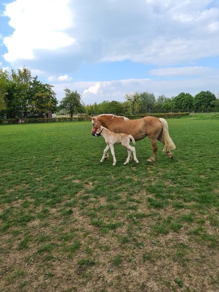 Zeer talentvol en uniek mooie sport Haflinger ruin te koop met veel uitstraling, sublieme beweging en een top bloedlijn! Geboren op 04-05-2022. Meet momenteel 1.50m en is nog in de groei. Inclusief stamboom, KVTH: A lijn! Met (voor)ouders die vele titels en predikaten op hun naam hebben als ster, sport en 1e premie. V: Anthony van de Wortel Hf.29433.K1 1.51m geb. 2006 NL 1e premie sport. V.V. Anthony liz.312/T 28842102 H.247410 geb. 2002 ADB FI V.M. Arachon liz.299/T.K1.NL Vader Athony van de wortel zeer talentvolle sport- en dekhengst. Voor het ontvangen van een YouTube video ontvang ik graag een bericht. INFORMATIE: -Zeer mooie verschijning. Sterke bouw maar toch elegant. -Prachtige, volle bos manen en staart. -Zeer makkelijk in de omgang, ontzettend mak, staat alles toe. Volgens dierenarts en tandarts zeer uniek hoe meewerkend en makkelijk hij is. -Zeer aanhankelijk en lief, slim, eerlijk en betrouwbaar. -Volledig verkeersmak. Bekend met alle landbouw voertuigen, vrachtverkeer en overige voertuigen en weggebruikers. -Bekend met meerdere soorten dieren. -Braaf bij de hoefsmid, dierenarts en tandarts. -Zadelmak en bekend met wandelen, longeren en grondwerk, etc. -Bekend met longe, pessoa, mentuig, barebackpad, zadel en hoofdstel, dekens en overige materialen. -Nergens bang voor. Schriktrainig stelde voor hem niets voor. -Getraind in Natural Horsemanship; Parelli. -Hele geschiedenis is bekend. In ons bezit sinds dat hij 6 maanden was. Direct alles geleerd en van alles al mee gedaan. -Uitermate geschikt voor de sport. Zowel dressuur als mennen of springen; waar hij echt talent voor toont. -Erg leergierig en werkwillend paard. -Heeft altijd 24/7 buiten gestaan in paddock met in en uitloop stal, zomers weidegang. Staat onderaan in de rangorde. -Vrij van enige vorm van gebreken. Geen eczeem, hoefbevangenheid of overige kwalen. #Er is tot nu toe alleen een aanvang gemaakt met stappen onder het zadel. Gezien de bak met de huidige weersomstandigheden amper bruikbaar is, zal dit niet verder opgepakt kunnen worden momenteel. Hij pakt alles verder zeer snel en zeer makkelijk op. Gezien zijn jonge leeftijd willen we niets overhaasten. Proef rijden is om deze redenen niet mogelijk. Hij is dus verder nog volledig naar eigen hand te zetten. Een beginnende ruiter is dan ook niet diegene die wij als toekomstig eigenaar zien.# Foto's zijn van alle leeftijden, van nu tot en met veulen. Ruiter op de foto is 1,75m. Laatste foto's zijn van vader en moeder. Vraagprijs: €6000,- Eventueel nieuw bruin lederen veelzijdigheidszadel ter overname voor €175,- en mogelijkheid tot overname van verdere benodigdheden. Filmpjes van onder het zadel op aanvraag. Zie mijn andere advertentie voor verkoop ander paard. Paarden mogen weg in verband met beëindigen hobby wegens gebrek aan tijd. Ze staan ons zeker niet in de weg! Bent u enthousiast geworden en zou u dit prachtig dier graag ontmoeten, dan hoor ik graag van u! Op zaterdagen niet bereikbaar.