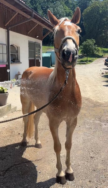 Sky ist ein sehr aufgeschlossenes Pferd, sehr verschmust und anhänglich zu seinem Menschen. Er möchte in allem immer gefallen und ist stehts bemüht alles richtig zu machen. Er liebt Boden Arbeit und jede menge Beschäftigung für den Kopf. Sky wurde schonend angeritten und ist altersentsprechend Ausgebildet. Ausgestattet mit guten Grundgangarten läuft er Schritt, Trab, Galopp brav unterm Sattel. Dennoch ist er sehr Willen stark und benötigt eine konsequente Hand , und ist aufgrund seines Alters kein Anfänger Pferd. Aktuell durchgeimpft und entwurmt. Sky hat bereits vorne Eisen.