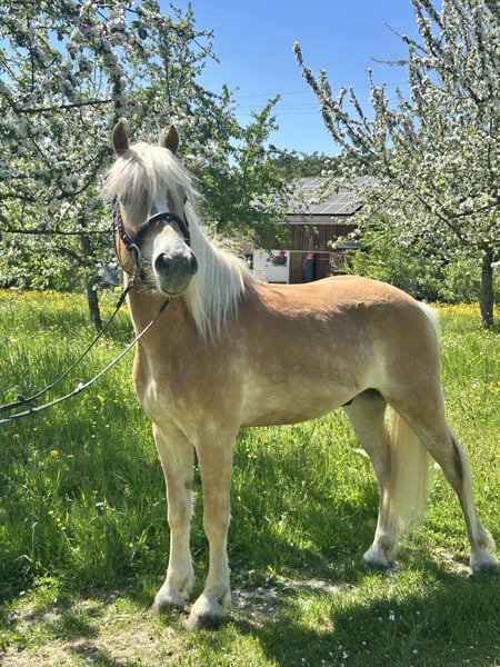 Ari ist ein 4 Jähriger reinrassiger Haflinger Wallach. Er ist seitdem er Absetzer ist bei uns und hat außer der Wurmkur und Impfungen noch keinen Tierarzt benötigt. Derzeit geht Ari Barfuß, kennt Hufschuhe und ist bei dem Hufpfleger sehr anständig. Bereits in den ersten Lebensjahren wurde er an den Straßenverkehr gewöhnt, wurde vom Boden viel gearbeitet und kennt Kinder, sowie einen Landwirtschaftlichen Betrieb mit großes Maschinen. Planen und Funn/Actionpacour, sowie Bodenarbeit liebt er. Da er 3 jährig sehr zierlich war, wurde er an der Longe und Doppellonge gearbeitet. 4 jährig wurde Ari Ein-/Zweispännig eingefahren, sowie Angeritten und im Gelände geritten. Sportlich sehen wir ihn im Zweispänner, wobei das Fahren auch im Einspänner seine Welt ist. Beim reiten benötigt er noch die Ausbildung auf dem Platz. Bockt und steigt nicht, denn Kinder können ohne Probleme geführt auf ihm reiten! Ari wird tagsüber in einem gemischten Offenstall gehalten und kennt die Boxenhaltung in der Nacht. Da er ein Jungpferd ist, benötigt er erfahrene Fahrer/Reiter die ihm eine weitere Ausbildung ermöglichen. Bisher hat er noch nie schlechte Erfahrung sammeln müssen! Es wäre schade wenn Ari nicht in Fördernde Hände kommt, denn er wird aufgrund einer Bestandsverkleinerung Verkauft und ist kein Notverkauft! Weitere Bilder und Videos auf Anfrage