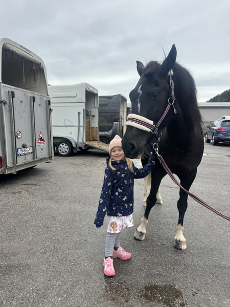 We have this great 4 year old mare for sale, who has great potential for show jumping. She is suitable for a skilled rider. She has a great contact naturefor child also and pleasant movement. training she jumps 100-110cm without any problems. We started the competition at the basic park, where she did excellently. Watch the video. The mare is very docile and her value will only increase. She is easy to feed, rough, has strong hooves and is a moulting type The mare is a 4year- Haflinger crossbreed, which was originally intended for my daughter. However, we discovered a great talent and a feeling for jumping, so we want her to continue. All you need is enough money and a big red Christmas ribbon ;)