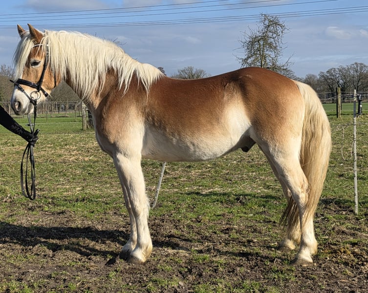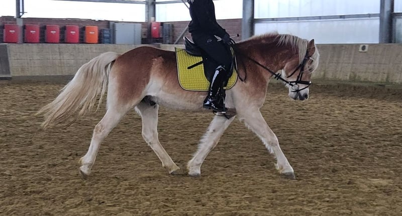 Aurelio is a 152 cm tall Haflinger gelding, a modern type of Haflinger suited for sport disciplines. He has no Thoroughbred influence. His pedigree includes Aber Hallo, Amecello, Amurat/PE Liliane, Winterstein, and Wildmoos. Aurelio will turn five years old this May. He was gently backed at the age of three, then had a break from riding to grow and develop. :-) During this time, he spent time on pasture and was extensively ground-worked. Recently, he has been back under saddle and is showing himself to be incredibly well-behaved—an amazing horse. Aurelio has three excellent gaits, making him very easy to sit. Additionally, he is light in the bridle, with a calm and cool temperament. Aurelio has potential for all equestrian disciplines. He is also a sweetheart in handling. We have already been very impressed by him. For more information, we look forward to your call at: 0177/2721831. If you're interested in videos, please contact us directly via WhatsApp! :-)