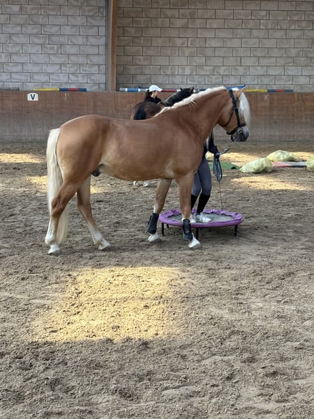 Winnie ist ein Sporthaflinger, geboren im Jahr 2020. Er ist von einer Anerkannten Haflinger Züchterin aus Südtirol. Sein Vater ist Waldmeister-T (BZ27609) und seine Mutter ist Iris (BZ22804). Seit 2024 wir mit ihm gearbeitet. Im März 2025 würde er kastriert. Und kam dann nach Deutschland. Winnie ist ein sehr verschmustest Pferdchen, das sehr lernwillig und Mutig ist. Er hat einen sehr freundlichen Charakter und zeigt ein sehr großes Herz. Jedoch zeigt er gerne auch mal seine Sturheit und ist daher nicht für unerfahrene und kleine Reiter (Kinder) geeignet. Nicht so wohl fühlt er sich in einer überfüllten Reithalle/Platz, daher die Rote Schleife im Schweif. Er kennt die Doppellonge, longieren, Bodenarbeit und Trail Training. Bisher wurde er Richtung springen ausgebildet, und zeigt hier viel Potenzial und Spaß. Auch Dressur mäßig ist er in den Grundlagen gearbeitet. Jedoch ist er noch in seiner Ausbildung. Mit seinen Gängen ist er definitiv als Turnier Pferd geeignet. Im Gelände zeigt er sich sicher und motiviert. Strand und Wasser kennt er ebenfalls. Traktoren, Busse, Autos usw. sind kein Problem für ihn. Momentan steht er nachts in der Box und Tagsüber einzeln auf dem Paddock, wobei er mit seinen Nachbarn spielen und kraulen kann. Wir wünschen uns für ihn einen liebevollen Reiter/-in der Spaß hat sein Potenzial voll auszuschöpfen, und mit ihm einen Freund fürs Leben findet.
