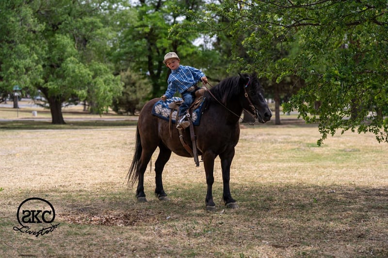▪️▫️◾️𝐭𝐡𝐞 𝑴𝒂𝒚 𝐒𝐞𝐥𝐞𝐜𝐭◾️▫️▪️ Happening now thru MONDAY | MAY 4th - Available EXCLUSIVELY on HorseBid's website! For more details and to register visit: www.Horsebid.com CONSIGNOR CONTACT: SKC Pony Collection 806-282-7093 LOCATION: Canyon, TX BREED: Haflinger Quarter Pony Cross REGISTERED: No REGISTERED NAME: Hippo COLOR: Black HEIGHT: 12.2 AGE: 8 GENDER: Gelding Introducing Hippo he stands 12.2 hands tall , 8 years old, and he is just as wide as he is tall!! Baby Hippo is a true BEGINNER type pony. Hippo is extremely safe and quiet no matter what direction you’re going! Hippo has been through all the task on and off the ranch whether it be the playday events or riding through the trails he takes care of his riders! Definition of bomb proof. Hippo is easy to catch, saddle, bathe, and he loves to be brushed. Hippo has the type of personality everyone wants in a good minded pony! Hippo has been hauled to many junior rodeos, where both kids have used him to push out calves, or just so Townes has something to ride around all day! He is a reliable babysitter. Hippo is the one who we have let our BEGINNER niece take out in an open pasture and just learned to ride. He will absolutely never take advantage! Hippo is smooth over the poles, crosses bridges and water with ease. He is also lots of help bringing in the roping steers during the day. If you are looking for a gentle, safe, jet black pony that is built to last, give us a call!