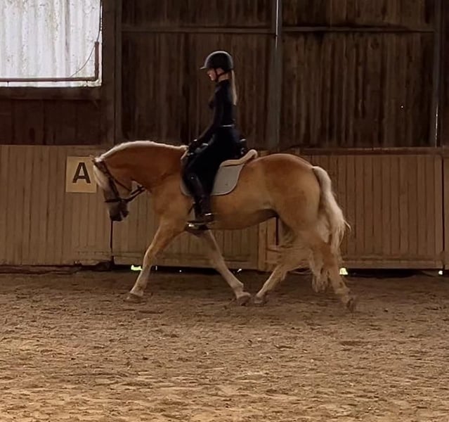 Mozart is seeking a new environment to thrive in Mozart is a well-behaved yet willing Haflinger gelding, currently used as a school horse with us. He is calm in the terrain, shoe- and loading-friendly. Due to an old pelvic misalignment, he is only suitable for lighter riders. As he suffers from eczema, a location in the north or in the Black Forest would be ideal. Mozart is already placed in rider WB, E-dressage, and E-jumping competitions.