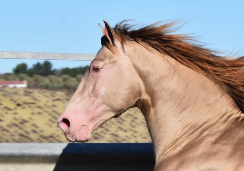 Ogier PRE w specjalnym kolorze, Bayo Perla (CrPrl), miły charakter z przyjemnym temperamentem, ciekawski, uważny, przytulny, zabawny, licencjonowany, stadnina od lutego 2024, ma już ponad 10 klaczy źrebnych, obecny wzrost 1,61 m, ostateczny wzrost 1,63-65 m, barokowy, piękny ruch, mieszanka hiszpańskiego i ujeżdżenia, ma dobre zdjęcia rentgenowskie i jest piroplazmoza negatywna, opłata stadna 500 €, znajduje się w prowincji Cordoba (Hiszpania).