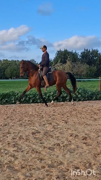 Presentamos una yegua de doma clásica de una calidad excepcional, capaz de satisfacer tanto a un jinete experimentado como a alguien con poco nivel de equitación, e incluso a un niño. Se trata de una yegua que destaca por su carácter afable y por un manejo muy sencillo pie a tierra. Ha sido criada en manada y convive con otros caballos en libertad, mostrando siempre una buena conducta social. El propietario actual la tiene desde que tenía un año, lo que garantiza un historial de manejo limpio, coherente y sin problemas, y confirma que ha sido la yegua principal en su entrenamiento y atención. A la hora de montarla, es una yegua especialmente fina y sensible a las ayudas. No necesita ni espuelas ni fusta, ya que dispone de una impulsión natural. A pesar de su belleza y de sus formas refinadas, sorprende por su fuerza de propulsión y por el buen equilibrio natural que muestra en todos los ejercicios. Ha sido trabajada en doma clásica y dispone de una base sólida que la convierte en un proyecto excelente para seguir progresando. Al mismo tiempo, debido a sus características, sería muy sencillo reconvertirla como yegua de equitación de trabajo si el futuro propietario así lo deseara. Es también una yegua muy versátil. Forma parte de su rutina salir semanalmente a realizar paseos por el campo, en los cuales se muestra siempre segura, confiable y equilibrada ante cualquier situación. Permite igualmente saltar pequeños obstáculos. Nunca ha llevado herraduras y presenta cascos sanos, fuertes y de una resistencia destacable, lo que confirma un cuidado riguroso y un manejo natural coherente. Nos encontramos, en definitiva, ante una yegua joven con una larga carrera deportiva por delante y con un margen de mejora muy amplio. Es la candidata ideal para cualquier jinete que busque un caballo seguro, noble y fiable, pero al mismo tiempo elegante, sensible y lleno de potencial. Una oportunidad magnífica para adquirir una yegua que combina belleza, versatilidad y una calidad de trabajo difícil de encontrar.