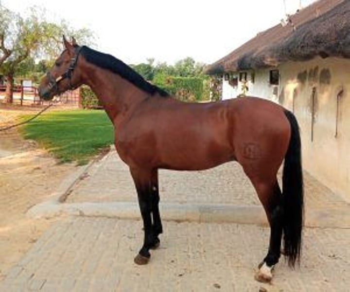 Young sport horse with elegance, nobility and an exceptional attitude This impressive Hispano-Arabian gelding stands out for his natural elegance and a nobility that captivates from the first encounter. At almost five years old (which he will celebrate in January), he already demonstrates a rare maturity and a great willingness to work, making him an ideal choice for demanding horse riders looking for a high-level partner with potential. He has a solid and well-constructed training base, with all the lateral movements confirmed at three paces: yields, shoulders in, halfpass… His energy is inexhaustible, but perfectly manageable: he is sensitive and responsive when asked, and calm and serene when not asked. An ideal combination of power and emotional stability. On a daily basis, he is an exemplary horse: respectful, educated, affectionate, present but never intrusiveAccustomed to moving, he gets in and out of the van with ease and has already participated in morphological competitions of the Hispano-Arab breed, showing both his quality and his composure in demanding environments. from selected lines , he combines quality genetics and remarkable character. In addition, he is fearless , which gives him a confidence that is transmitted to the horse rider, both in the track and outside. At IberHorse, we select horses like him for horse riders who are looking for much more than a high-performance horse: They are looking for a true life companion, with a noble and reliable heart.We'll guide you through the process. To learn more or to see if this horse is right for you, book a personalized call with our team.