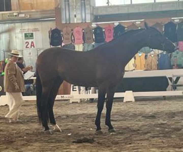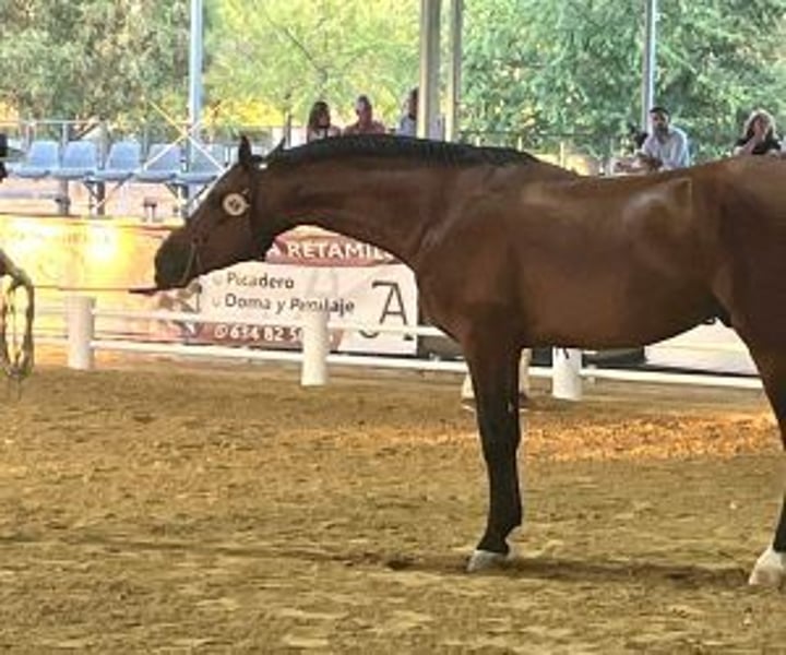 Joven caballo de deporte con elegancia, nobleza y una actitud excepcional Este impresionante caballo mestizo hispanoárabe destaca por su elegancia natural y una nobleza que cautiva desde el primer encuentro. Con casi cinco años (que celebrará en enero), ya demuestra una madurez rara y una gran disposición para trabajar, lo que lo convierte en una elección ideal para jinetes exigentes que buscan un compañero de alto nivel con potencial. Tiene una base de entrenamiento sólida y bien construida, con todos los movimientos laterales confirmados a tres aires: ceder, hombros adentro, media vuelta... Su energía es inagotable, pero perfectamente manejable: es sensible y receptivo cuando se le pide, y tranquilo y sereno cuando no se le solicita. Una combinación ideal de potencia y estabilidad emocional. En el día a día, es un caballo ejemplar: respetuoso, educado, cariñoso, presente pero nunca intrusivo. Acostumbrado a moverse, entra y sale de la furgoneta con facilidad y ya ha participado en competiciones morfológicas de la raza hispanoárabe, mostrando tanto su calidad como su compostura en entornos exigentes. De líneas seleccionadas, combina genética de calidad y carácter notable. Además, no tiene miedo, lo que le otorga una confianza que se transmite al jinete, tanto en la pista como fuera de ella. En IberHorse, seleccionamos caballos como él para jinetes que buscan mucho más que un caballo de alto rendimiento: buscan un verdadero compañero de vida, con un corazón noble y fiable. Te guiaremos a través del proceso. Para aprender más o para ver si este caballo es adecuado para ti, reserva una llamada personalizada con nuestro equipo.