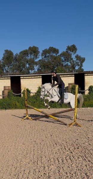 caballo Hispano-Árabe en venta Ejemplar de sangre Hispano-Árabe, un caballo castrado nacido en 2010. Este tordo de elegante porte combina belleza y versatilidad, siendo ideal para jinetes que buscan un compañero con el cual seguir apriendiendo En salto, este caballo demuestra una buena técnica. Haciendo algo de doma. Saliendo al campo en grupo y de manera individual. aptopara jinetes en progresiónde nivel medio avanzado. Su temperamento tranquilo y su buena disposición hacen que sea un compañero fácil de manejar con un carácter amigable ¿Interesado en conocer más sobre este ejemplar? No dudes en contactarnos para más información y concertar una visita.