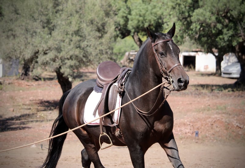 Este hermoso caballo de alzada en capa oscura, un potro absolutamente confiable, tanto en el ring como en el campo. TROYA es un compañero leal en todos los aspectos de la vida, muy sociable, fácil de montar, bien educado y compatible con otros caballos... casi no hay una cualidad positiva que no se aplique a este magnífico ejemplar. ¡Solo le falta un hogar maravilloso para alcanzar su plena felicidad! ¿Quién desea ofrecerle un lugar especial a este elegante caballo? TROYA está correctamente entrenado en los pasos básicos, domina el trabajo en la shoulder-in y los desplazamientos laterales, y continúa siendo entrenado por mí de manera profesional. Además, se desenvuelve muy bien en grupo, pero también en solitario en el campo. TROYA es un Hispano-Árabe con pasaporte español. Ubicación: Valencia, España.
