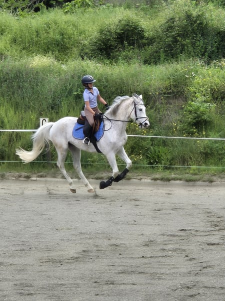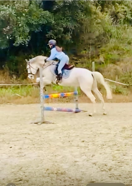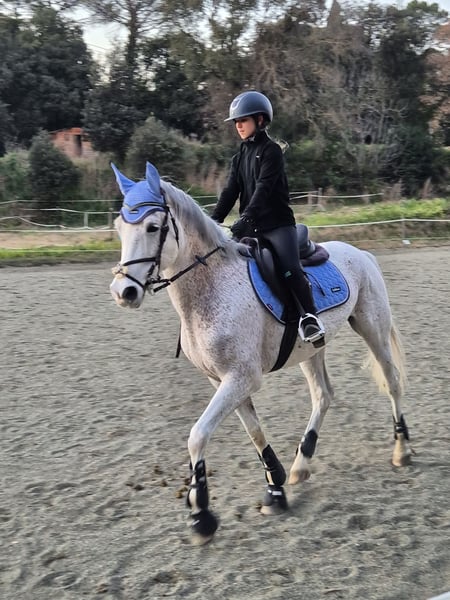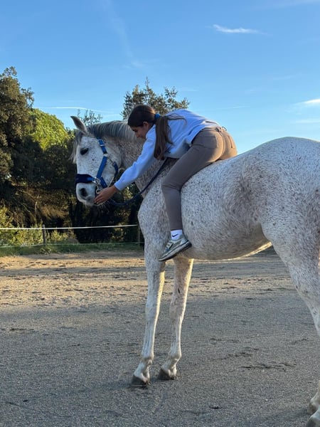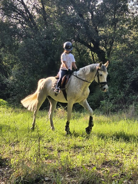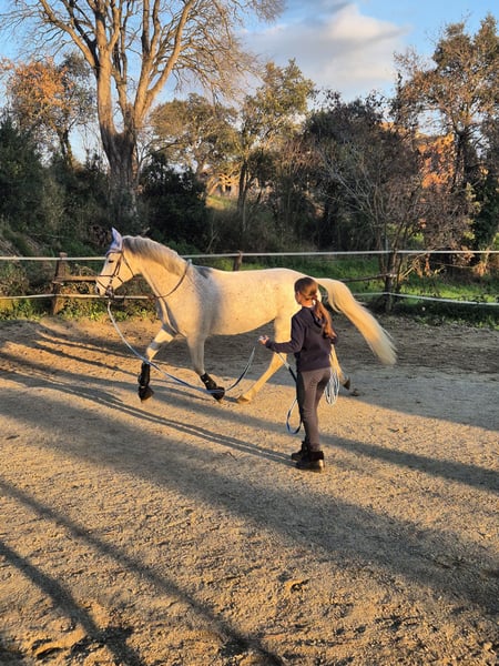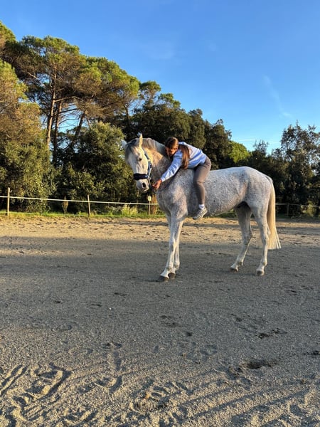 Nombre: Real Año de nacimiento: 2017 Altura: 1,62cm Capa: Tordo Vendemos a este cariñoso caballo de salto ya que necesita que su dueño tenga mas fuerza y experiencia. No es recomendado para principiantes. Salta entre 80-90cm y ha participado en varios concursos con su dueño anterior. Se porta bien al entrar y salir del remolque. Puede salir tanto al campo como en carretera y no se asusta fácilmente. Es un caballo tranquilo y de confianza, se porta bien ensillándolo y desmontando. Se lleva bien con otros caballos y se comporta bien en pista. ¿Quieres un caballo todoterreno en el que puedas confiar ? ¡Este es ideal !
