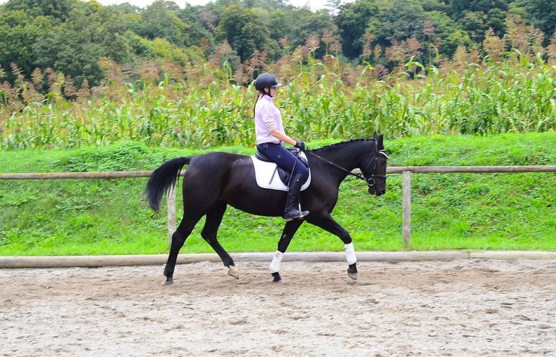 This 10-year-old beautiful black mare with a great character is easy in the neck and extremely comfortable to sit. She is familiar with the arena, indoor riding, and trail rides. A great leisure horse for the not-so-tall rider. The mare has also been driven in a pair.