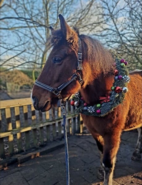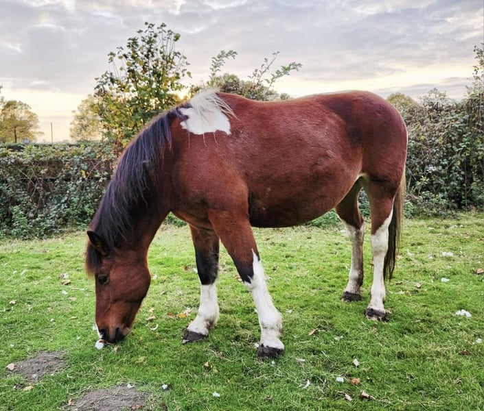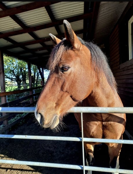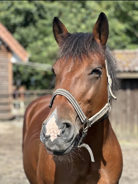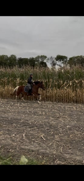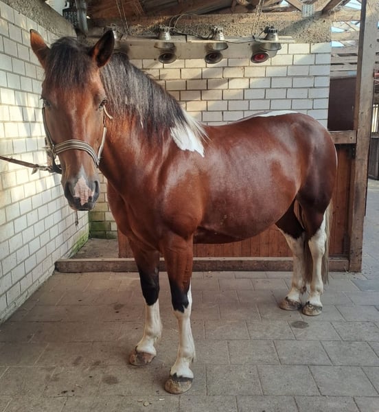Zum Verkauf steht die 2012 geborene Warmblut-Mix Stute Fara (Braunschecke) mit einem Stockmaß von ca. 1,55 m. Fara ist seit 2 Jahren bei uns . In dieser Zeit wurde sie gelegentlich im Gelände geritten, jedoch nicht regelmäßig dressurmäßig gearbeitet. Aktuell wird sie wieder angeschoben und langsam aufgebaut. Aktuelle Reitbilder folgen noch sowie Reitvideos.. Vor ihrer jetzigen Zeit stand Fara im Schulbetrieb und kennt somit den Umgang mit unterschiedlichen Reitern. Sie soll aber nicht mehr in den Schulbetrieb. Im Umgang zeigt sich Fara bei Erwachsenen freundlich und umgänglich, sodass sie sich auch für Wiedereinsteiger eignen kann. Sie mag nicht so gerne Kinder, also kein kinderpony Beim Ausreiten ist Fara zuverlässig, insbesondere in der Gruppe, und zeigt sich dort entspannt und brav. Zudem ist Fara verladesicher, schmiedefromm und zeigt sich auch beim Tierarzt stets von ihrer besten Seite. Fara bringt eine gute Basis mit und kann mit etwas Zeit und Training wieder zu einem zuverlässigen Freizeitpartner werden. Standort: Ahaus Sattel und Zubehör sind im Preis inbegriffen Probereiten ist nach Absprache möglich. Bei ernsthaftem Interesse und für weitere Informationen gerne melden.
