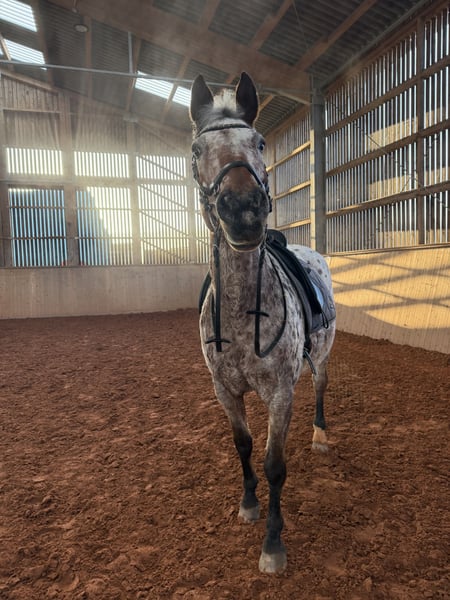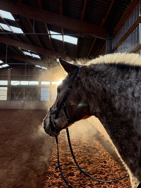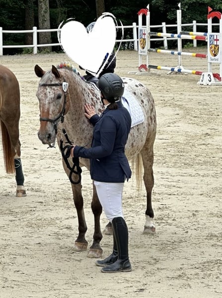Wegen Reitsportaufgabe in allerbeste Hände zu verkaufen. Läuft brav in der Halle/auf dem Platz. Geht alleine und in der Gruppe ins Gelände, benötigt alleine allerdings einen sicheren Reiter. Lässt sich auch von Kindern reiten. Kennt Hunde, Traktor, Kühe, Kinder.. Da sie aufspringen lässt, kann sie nur mit Stuten zusammen stehen. Ist in der Herde rangniedrig. Wird nur in Offenstall verkauft! Hatte 2022 ein kleines Loch im Unterstützungsband der tiefen Beugesehne, komplett verheilt und voll reitbar. Wurde 2024 wieder kontrollgeschallt und darf laut Tierarzt auch springen. Dazu benötigt sie aber einen erfahrenen/sicheren Reiter. Platz vor Preis, kein Notverkauf, keine Händler und keine Schulbetriebe